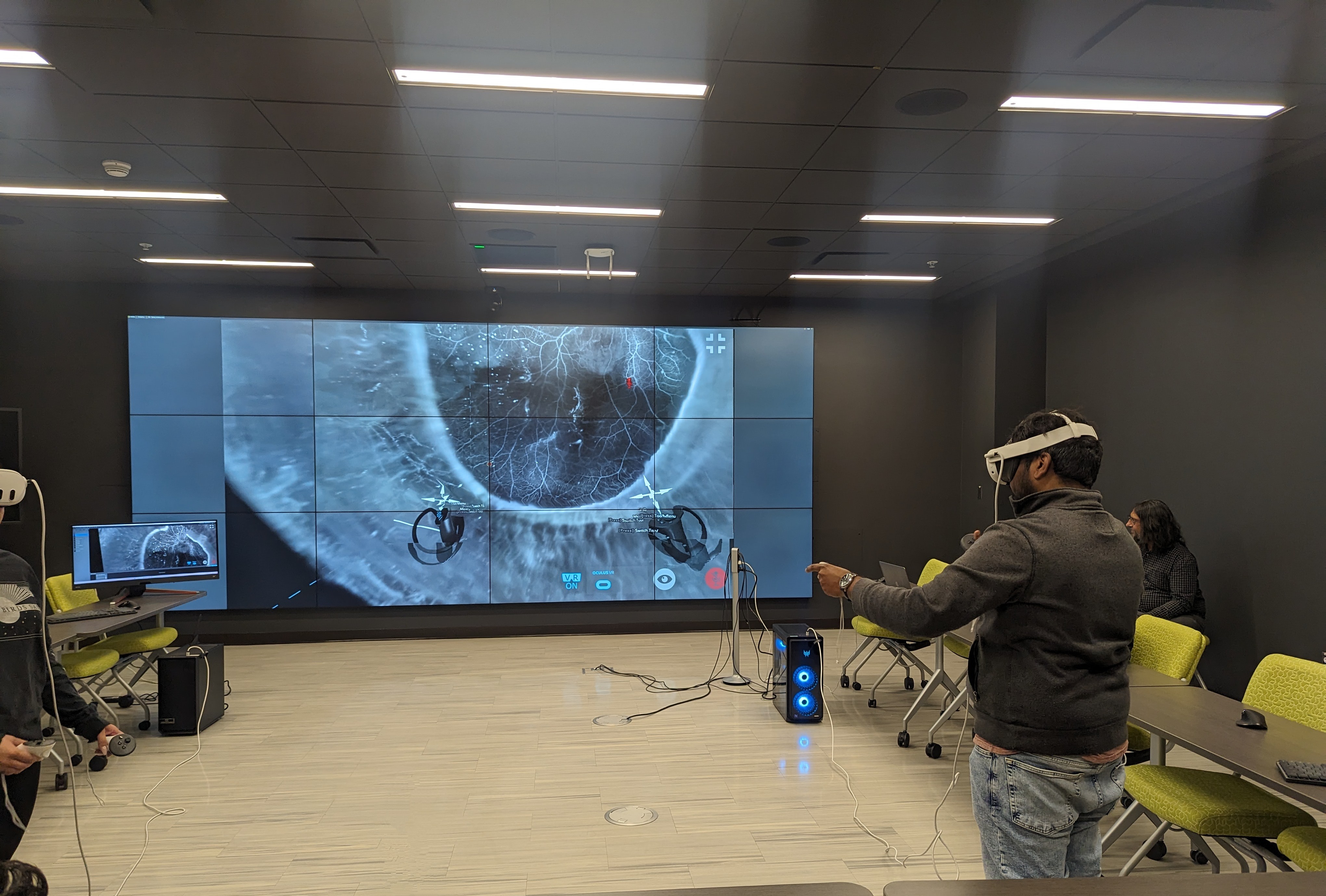 VizInC is a state-of-the-art space outfitted with hardware geared for ultra-high resolution data visualizations and analysis. VizInC provides a 100-million-pixel visualization wall that allows researchers to collaboratively explore large complex datasets, a high-performance rendering node for intensive computations, a multi-touch system to facilitate exploration of models and a 3D projection system for immersive stereoscopic rendering of scientific data. VizInC is available to the UTEP research community requiring such capabilities.