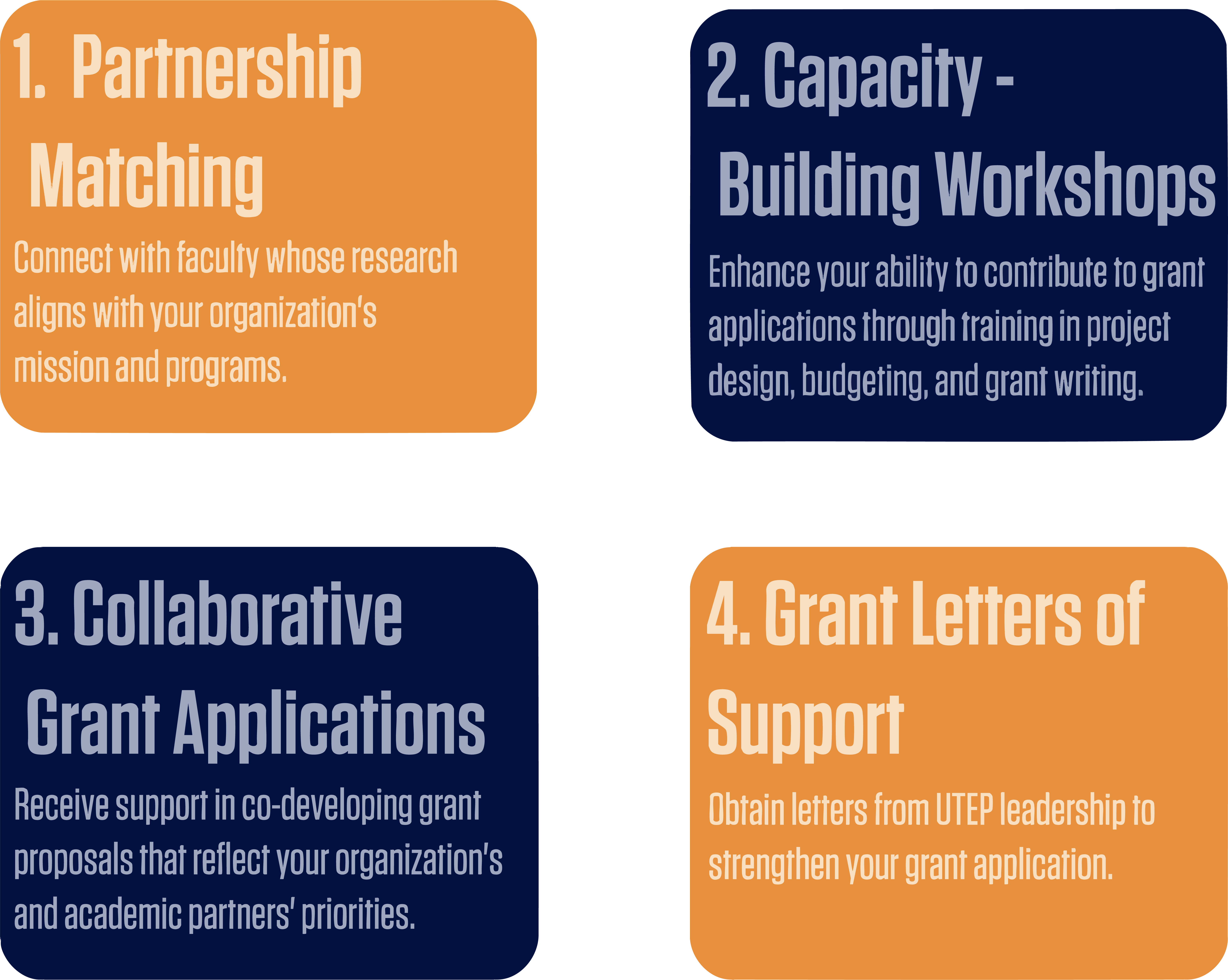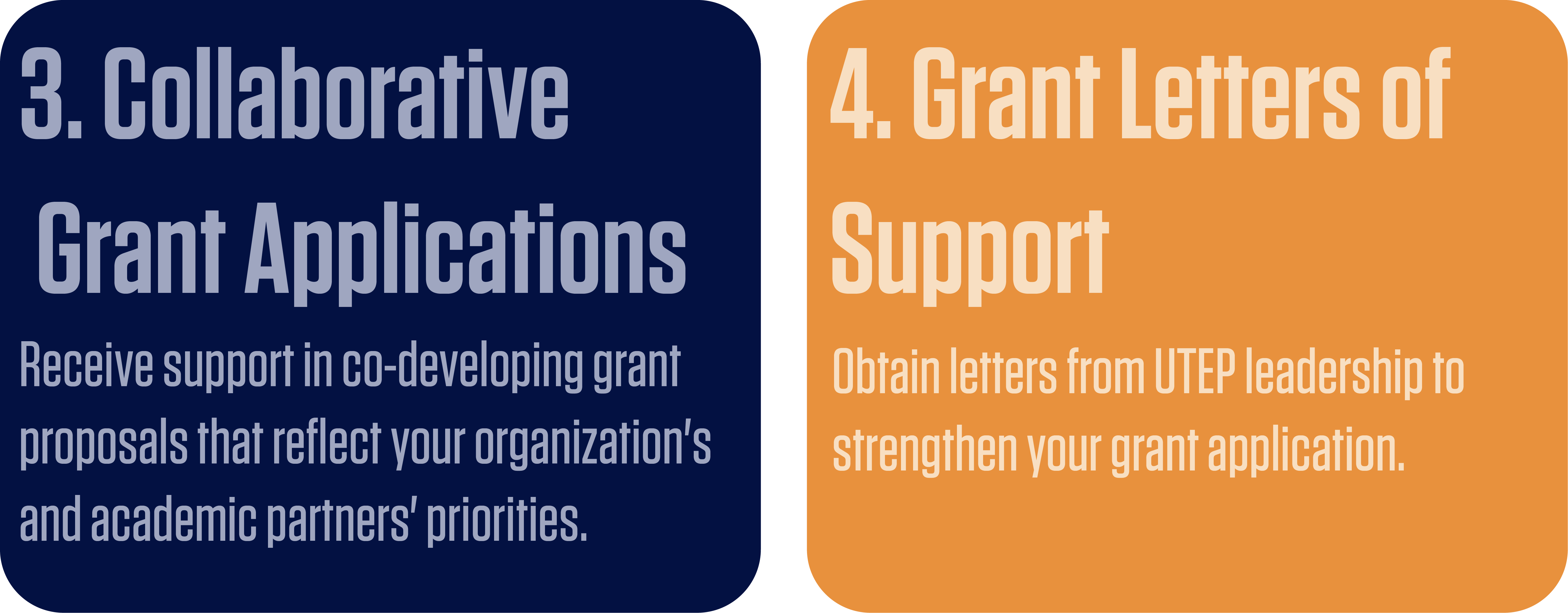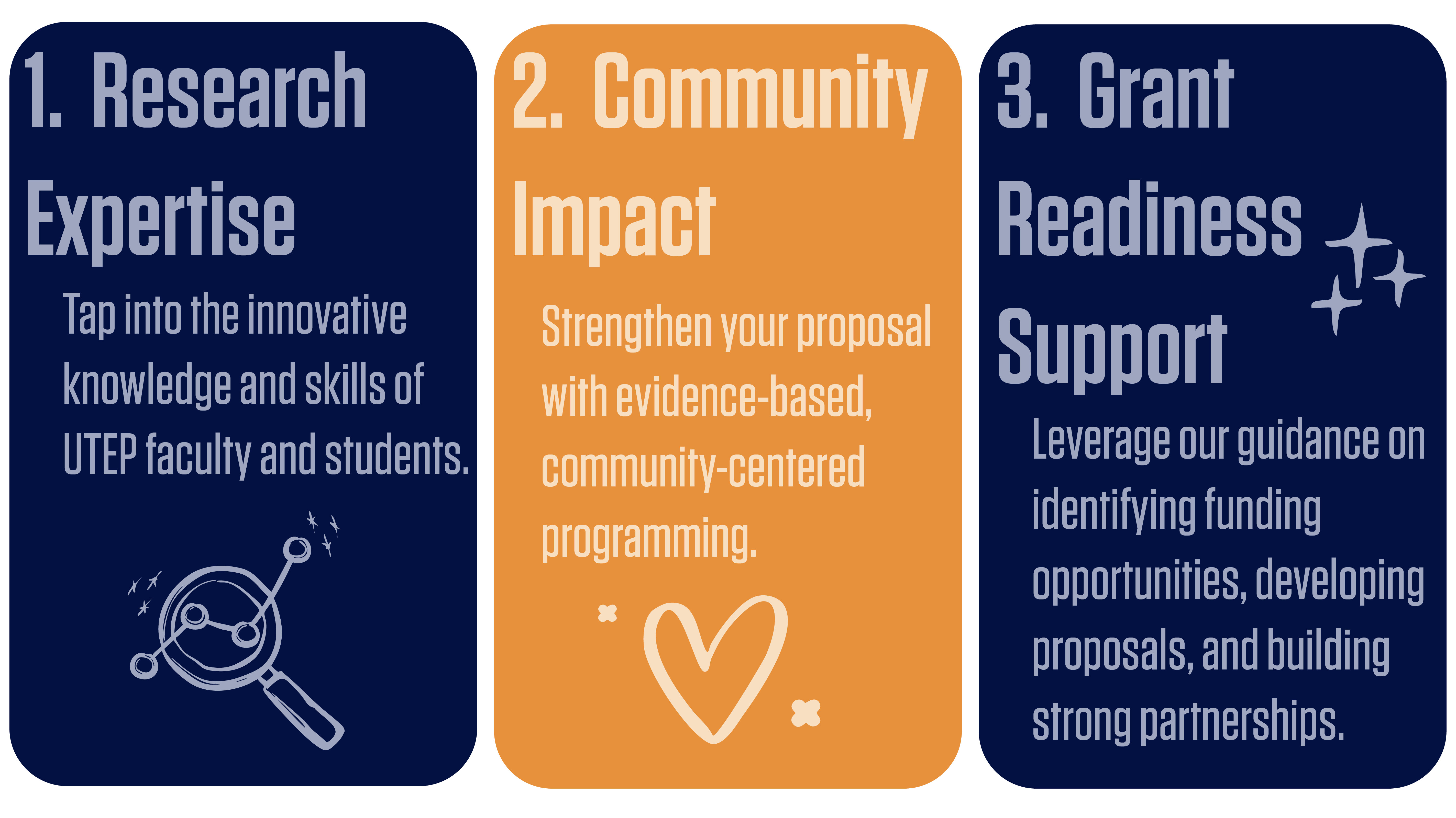 If you're a community-based organization interested in collaborating with UTEP faculty for grant opportunities, the CCE can assist with: