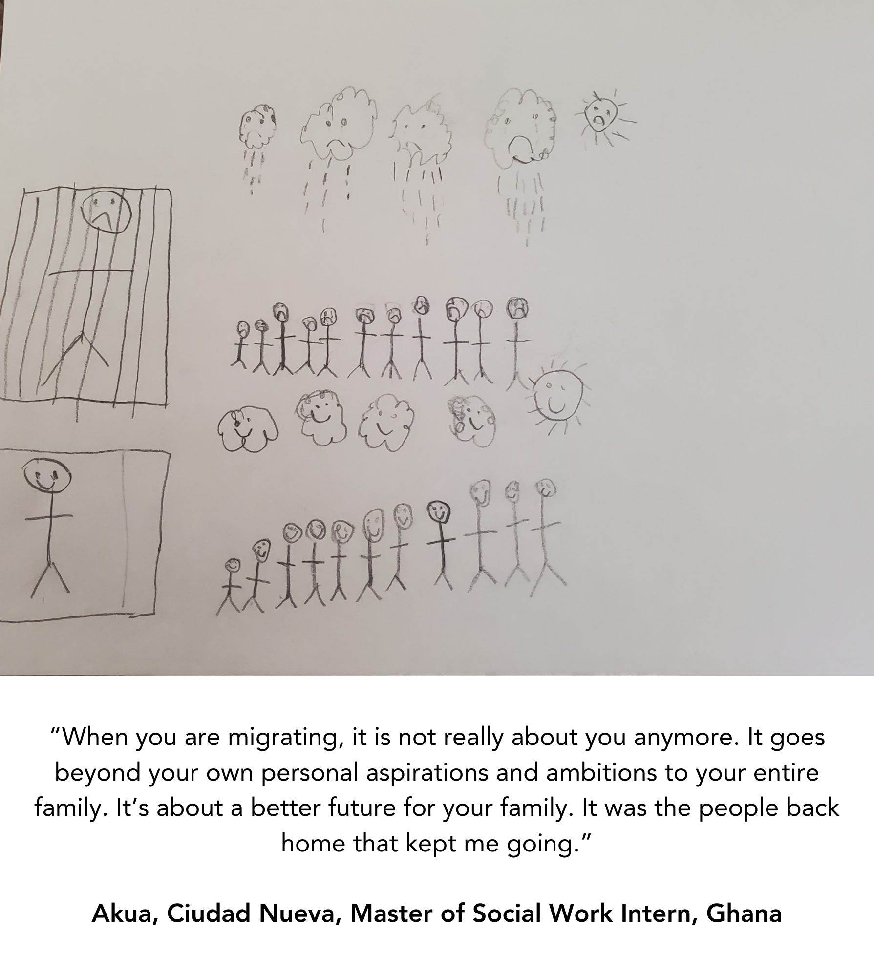 Los trabajadores, voluntarios, y participantes del programa Ciudad Nueva y Abara aprovecharon la oportunidad para compartir sus viajes de inmigración y reflejar en venirse a Estados Unidos, fomentando diálogos impactantes que arrojen luz sobre sus experiencias.