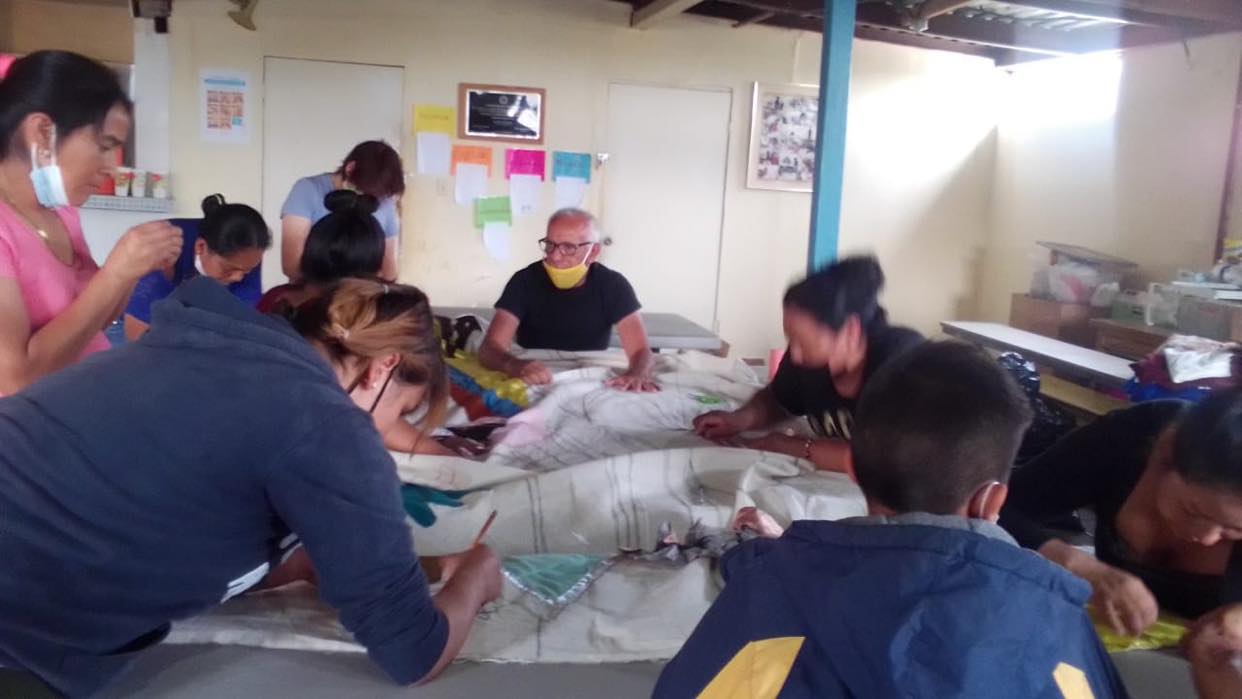 Los miembros del Taller de Costura Huellas crearon el Tapiz La Familia en un refugio para migrantes de Juárez durante la primavera de 2021. Los cofundadores del taller y los invitados hablaron sobre sus experiencias migratorias, el tiempo que pasaron participando en el taller de costura y sus esperanzas y sueños para el futuro.