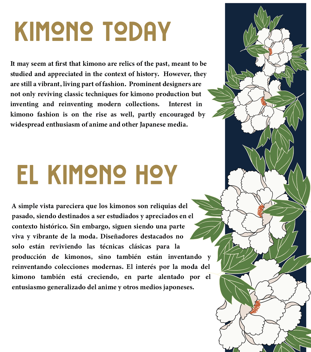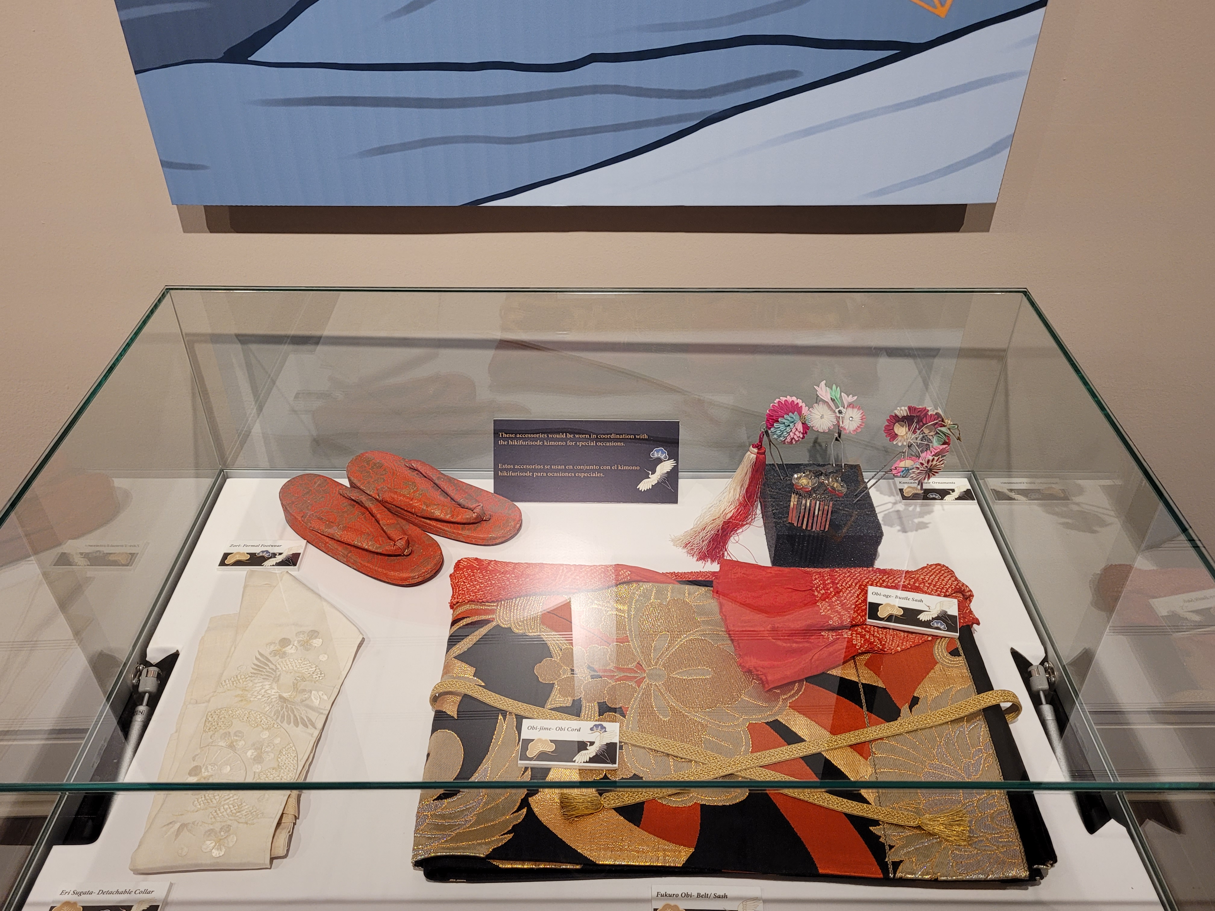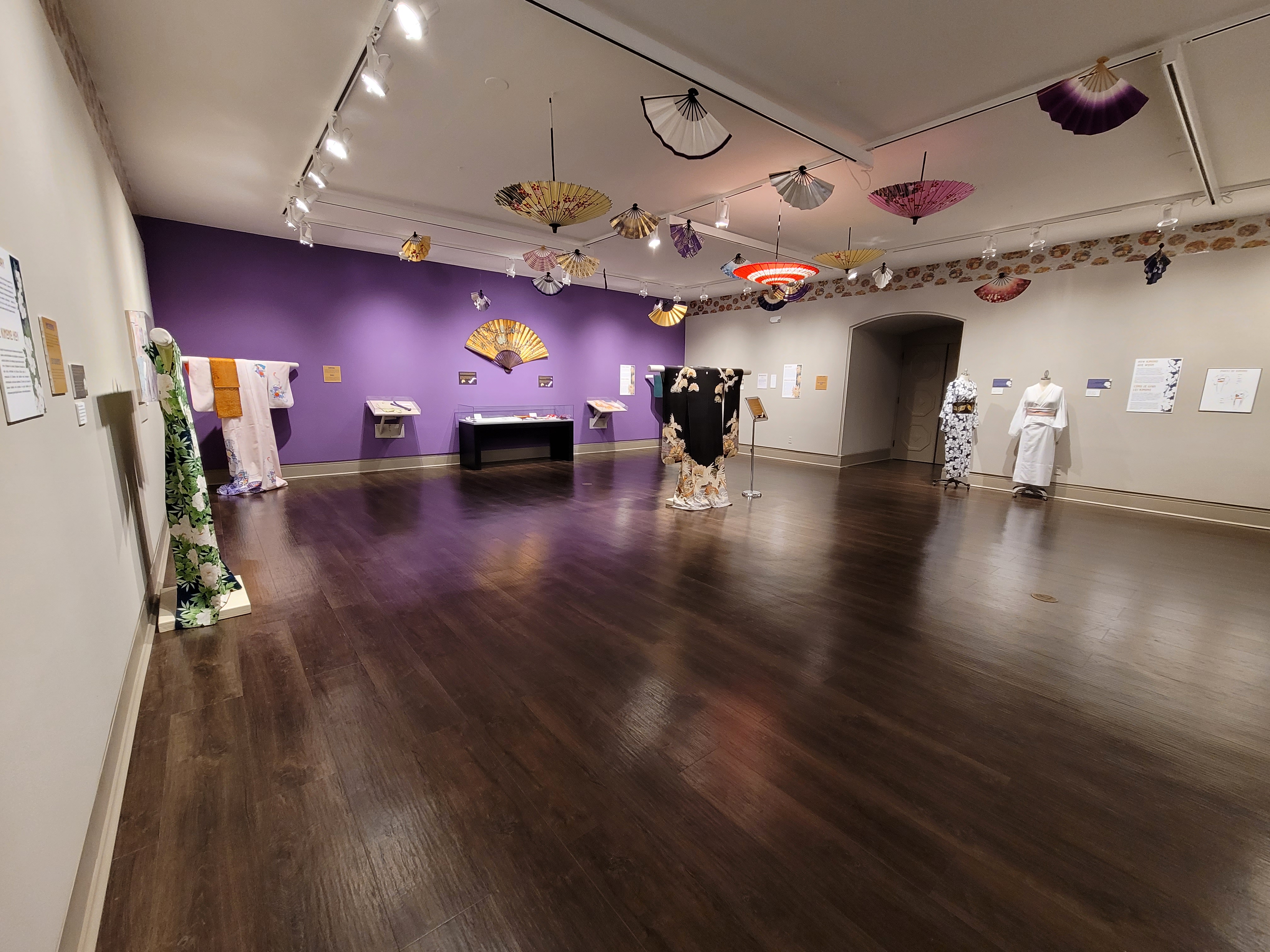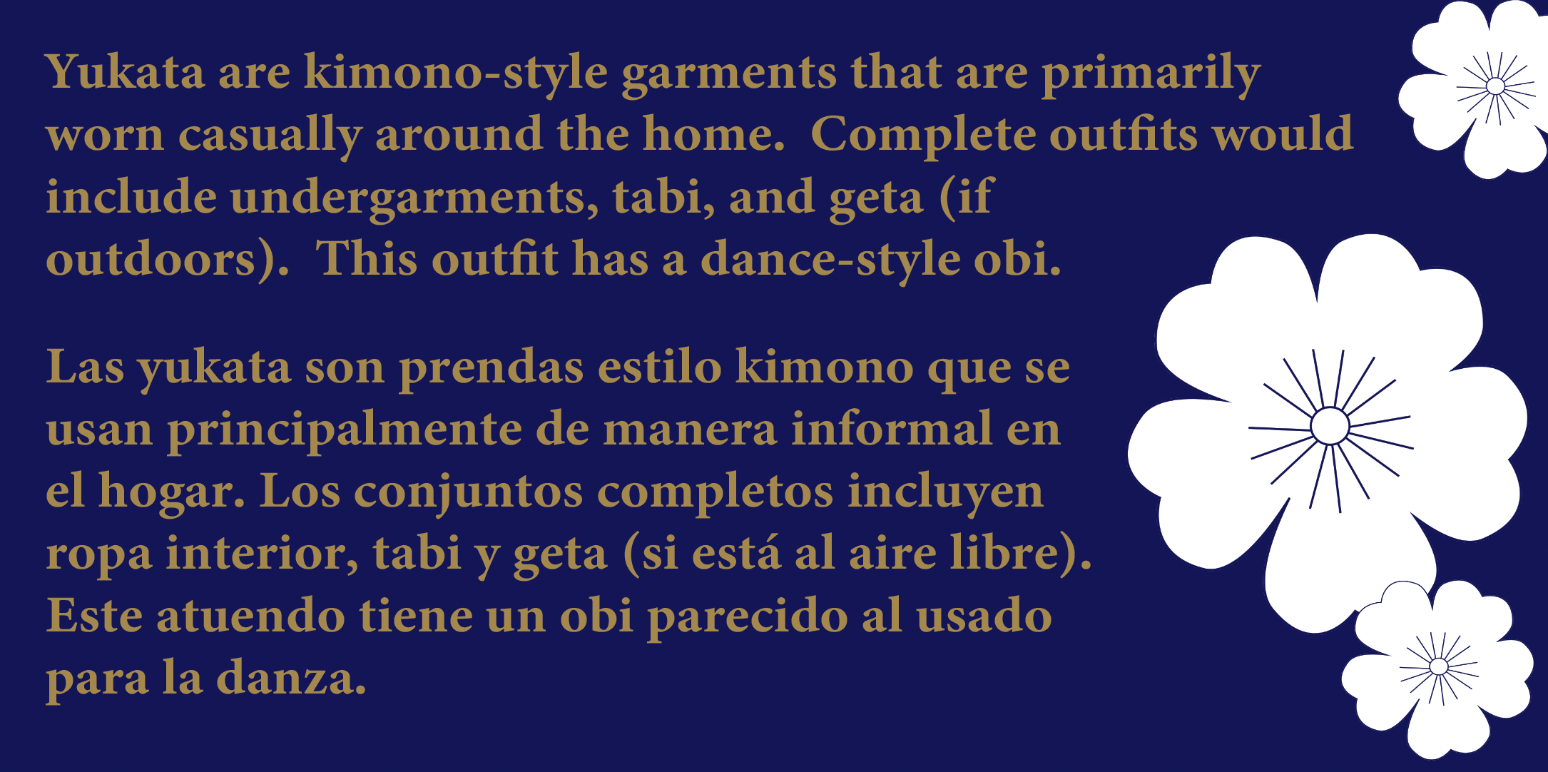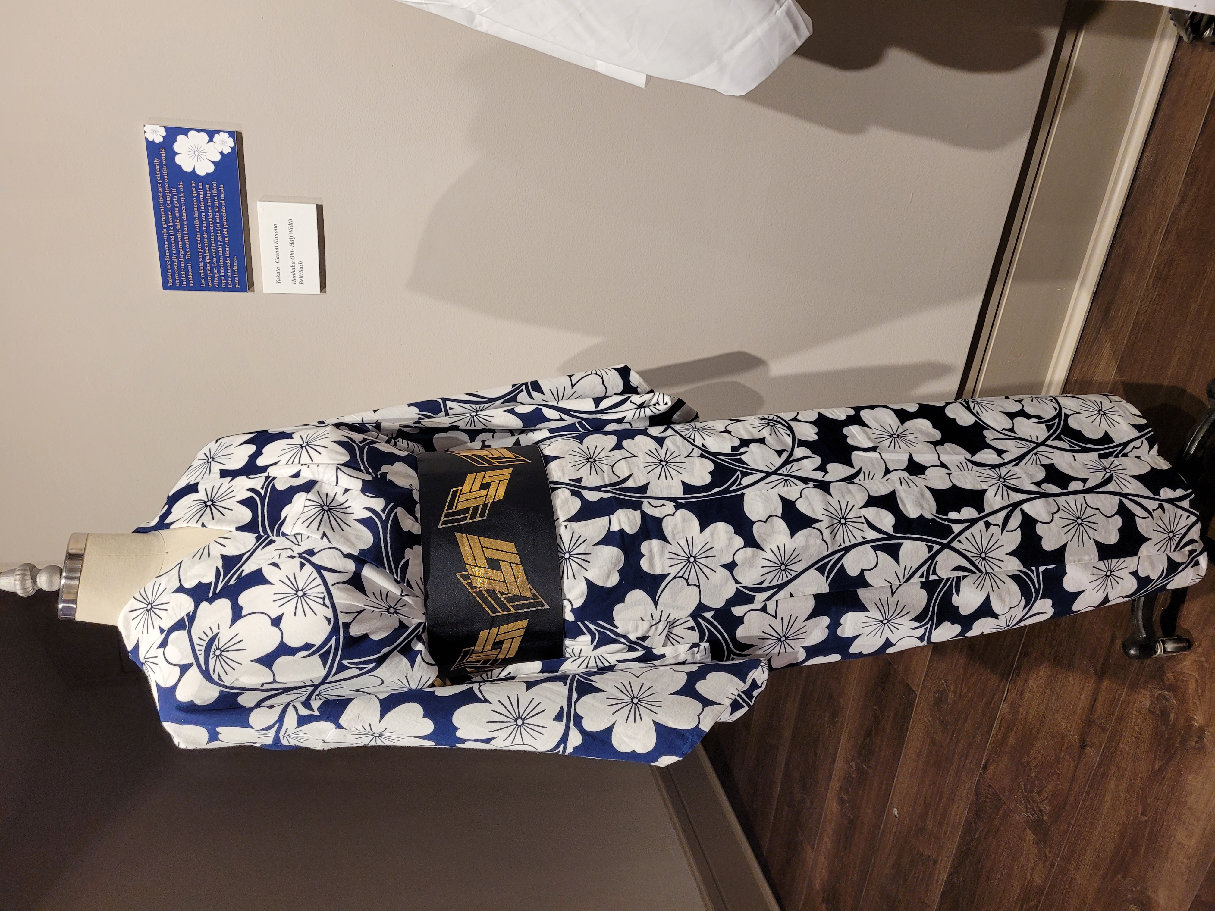 In 2016, the UTEP Theater Department received a large donation of kimonos, accessories, and performance videos that belonged to Katsuko "Kitty" Huntley. Mrs. Huntley, who grew up in Japan, married an American G.I., immigrated to the United States in 1952, and eventually settled in El Paso. While we know little about Mrs. Huntley and how she acquired these objects, this unexpected inheritance gives us a glimpse into a previously unknown life. In her videos, Kitty appears in kimono with her dance group. Their dance performances tell stories from a home across the world. We can speculate that her collection of kimonos and the dances that she performed provided a connection to Japan, her life prior to immigrating to the United States, and the Japanese- American community here in El Paso. It was this story that inspired us to title the exhibit Ties to Home: The Kimonos of Kitty Huntley.