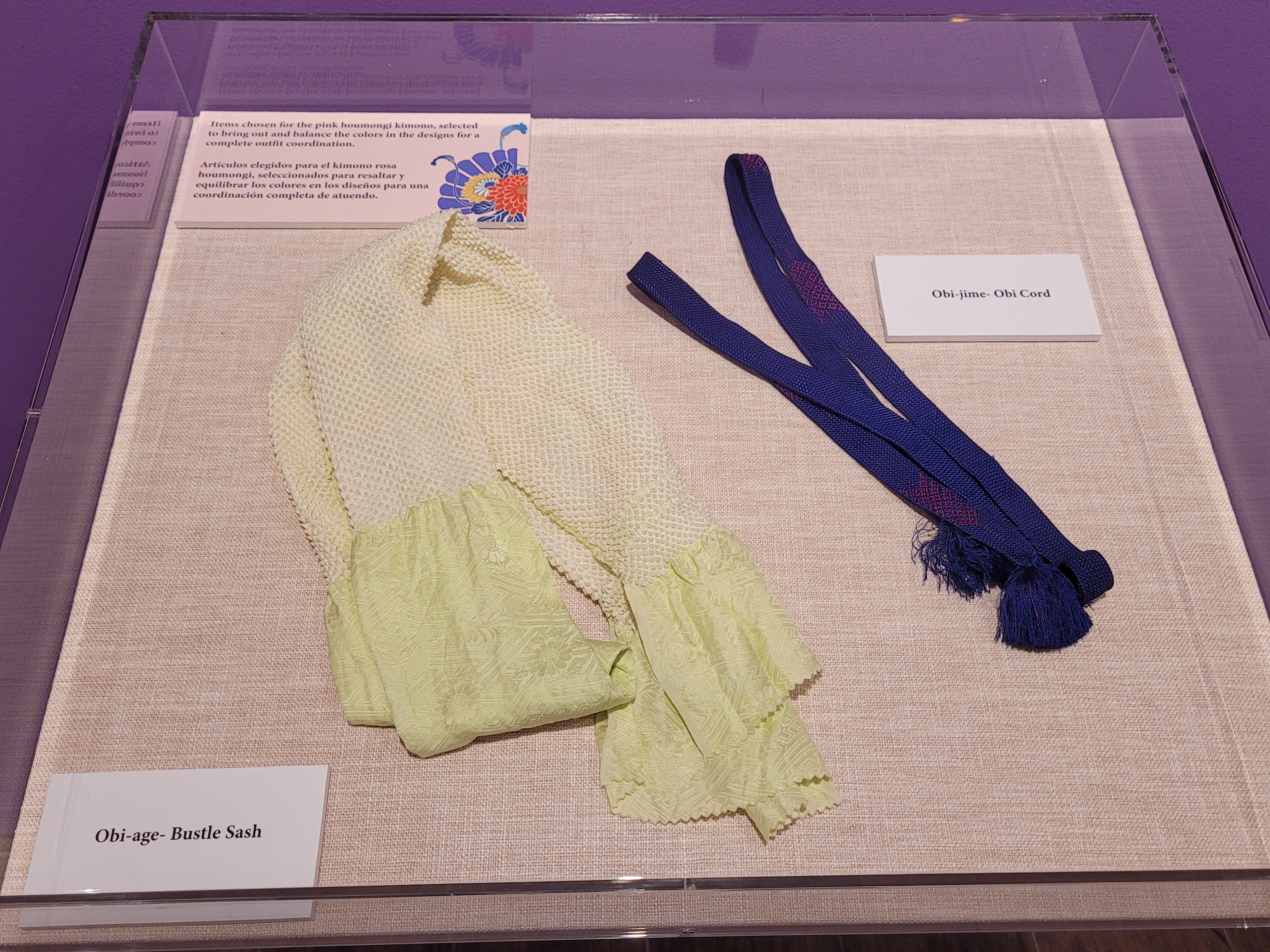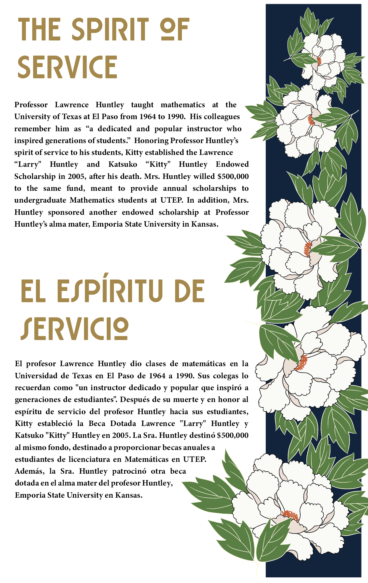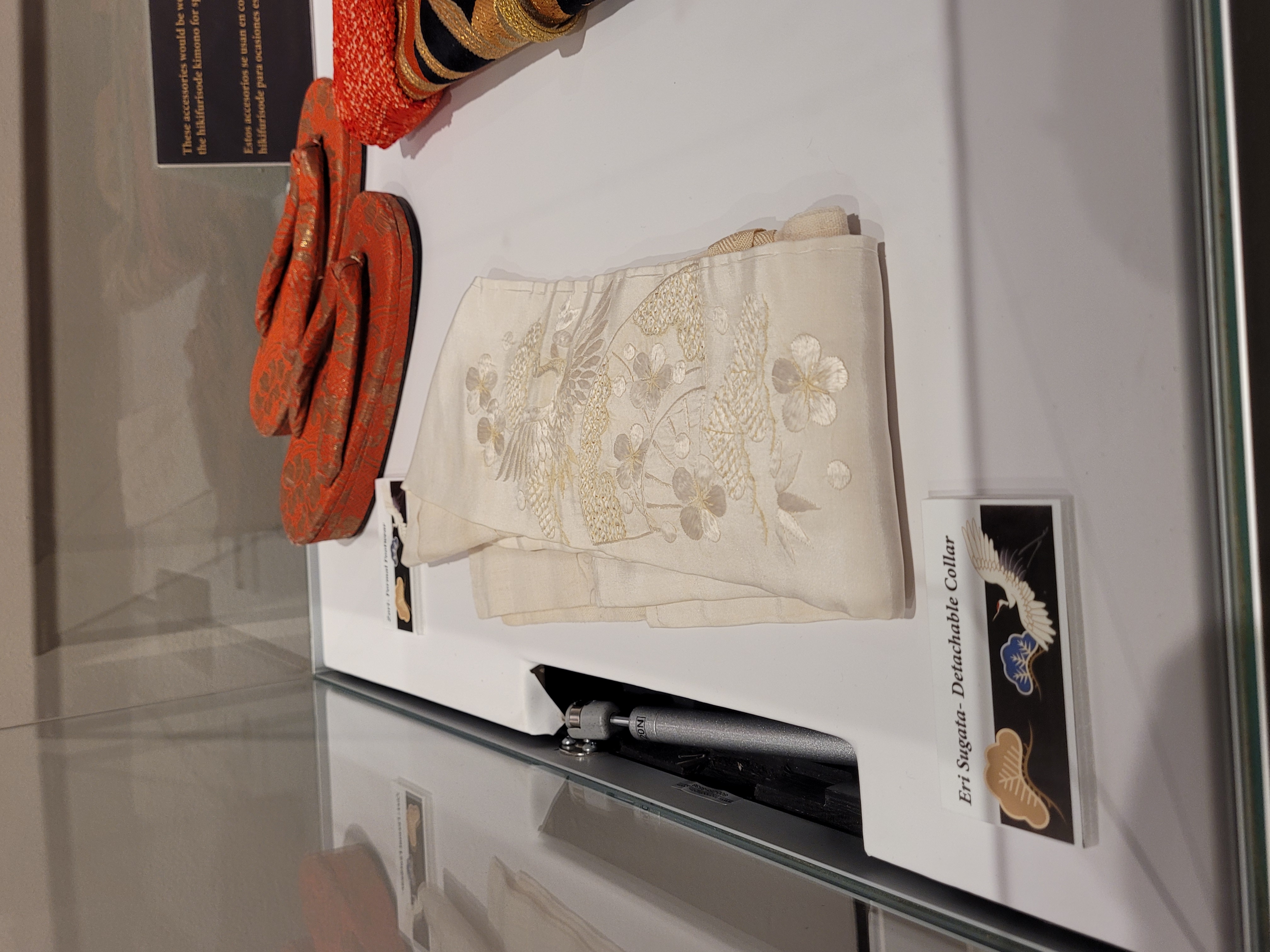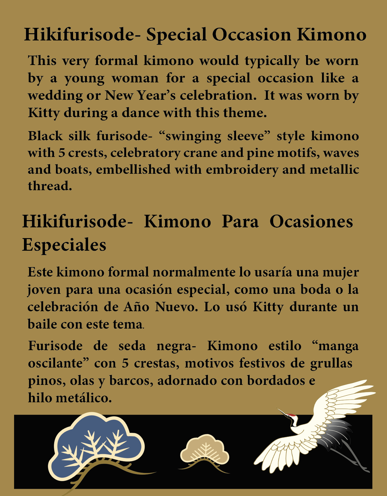 In 2016, the UTEP Theater Department received a large donation of kimonos, accessories, and performance videos that belonged to Katsuko "Kitty" Huntley. Mrs. Huntley, who grew up in Japan, married an American G.I., immigrated to the United States in 1952, and eventually settled in El Paso. While we know little about Mrs. Huntley and how she acquired these objects, this unexpected inheritance gives us a glimpse into a previously unknown life. In her videos, Kitty appears in kimono with her dance group. Their dance performances tell stories from a home across the world. We can speculate that her collection of kimonos and the dances that she performed provided a connection to Japan, her life prior to immigrating to the United States, and the Japanese- American community here in El Paso. It was this story that inspired us to title the exhibit Ties to Home: The Kimonos of Kitty Huntley.
