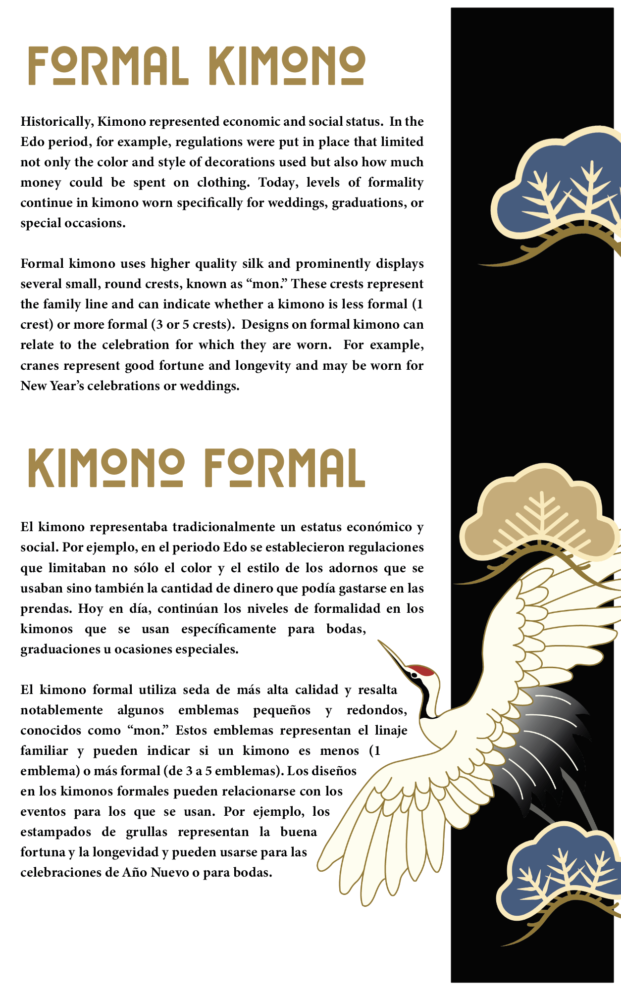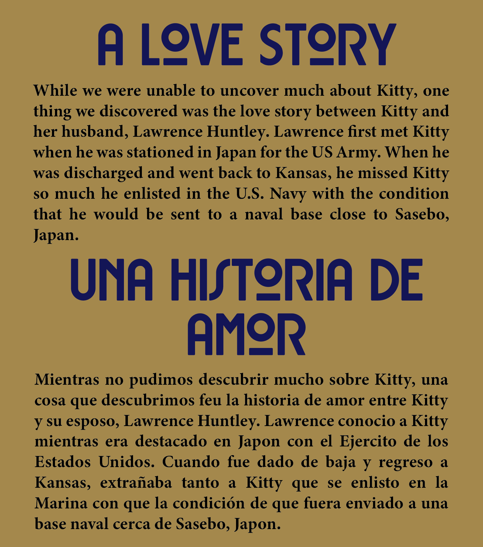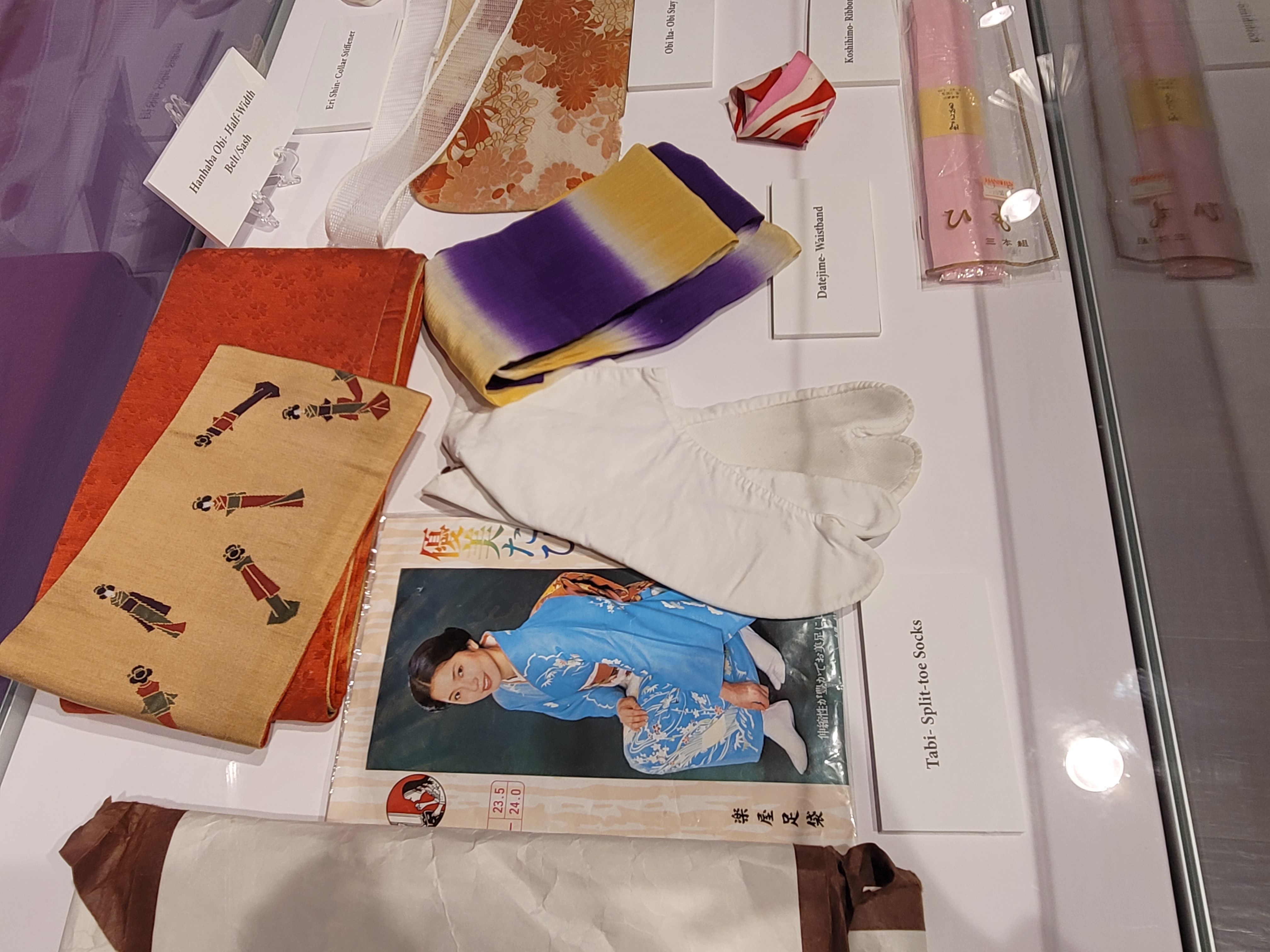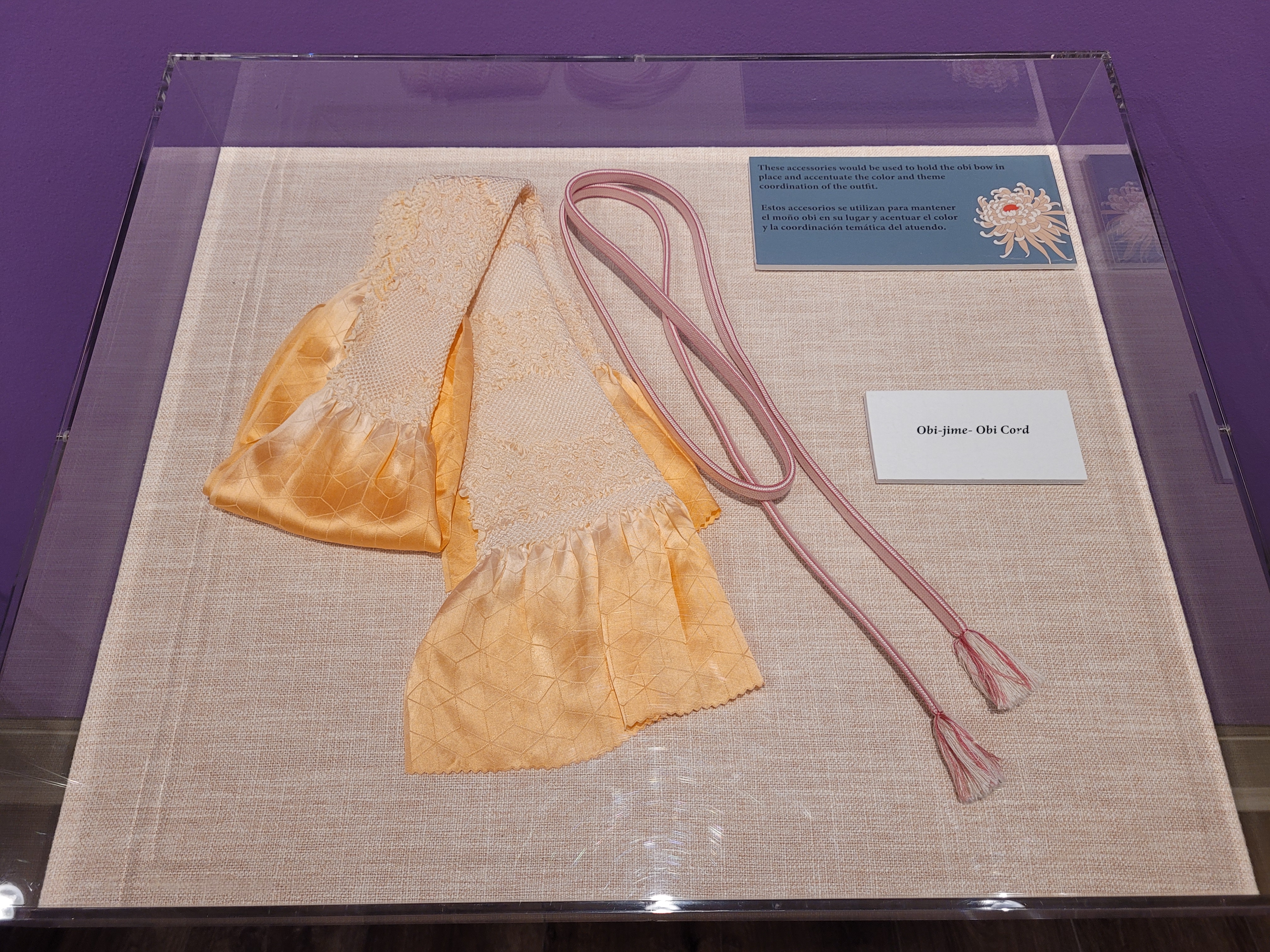 In 2016, the UTEP Theater Department received a large donation of kimonos, accessories, and performance videos that belonged to Katsuko "Kitty" Huntley. Mrs. Huntley, who grew up in Japan, married an American G.I., immigrated to the United States in 1952, and eventually settled in El Paso. While we know little about Mrs. Huntley and how she acquired these objects, this unexpected inheritance gives us a glimpse into a previously unknown life. In her videos, Kitty appears in kimono with her dance group. Their dance performances tell stories from a home across the world. We can speculate that her collection of kimonos and the dances that she performed provided a connection to Japan, her life prior to immigrating to the United States, and the Japanese- American community here in El Paso. It was this story that inspired us to title the exhibit Ties to Home: The Kimonos of Kitty Huntley.