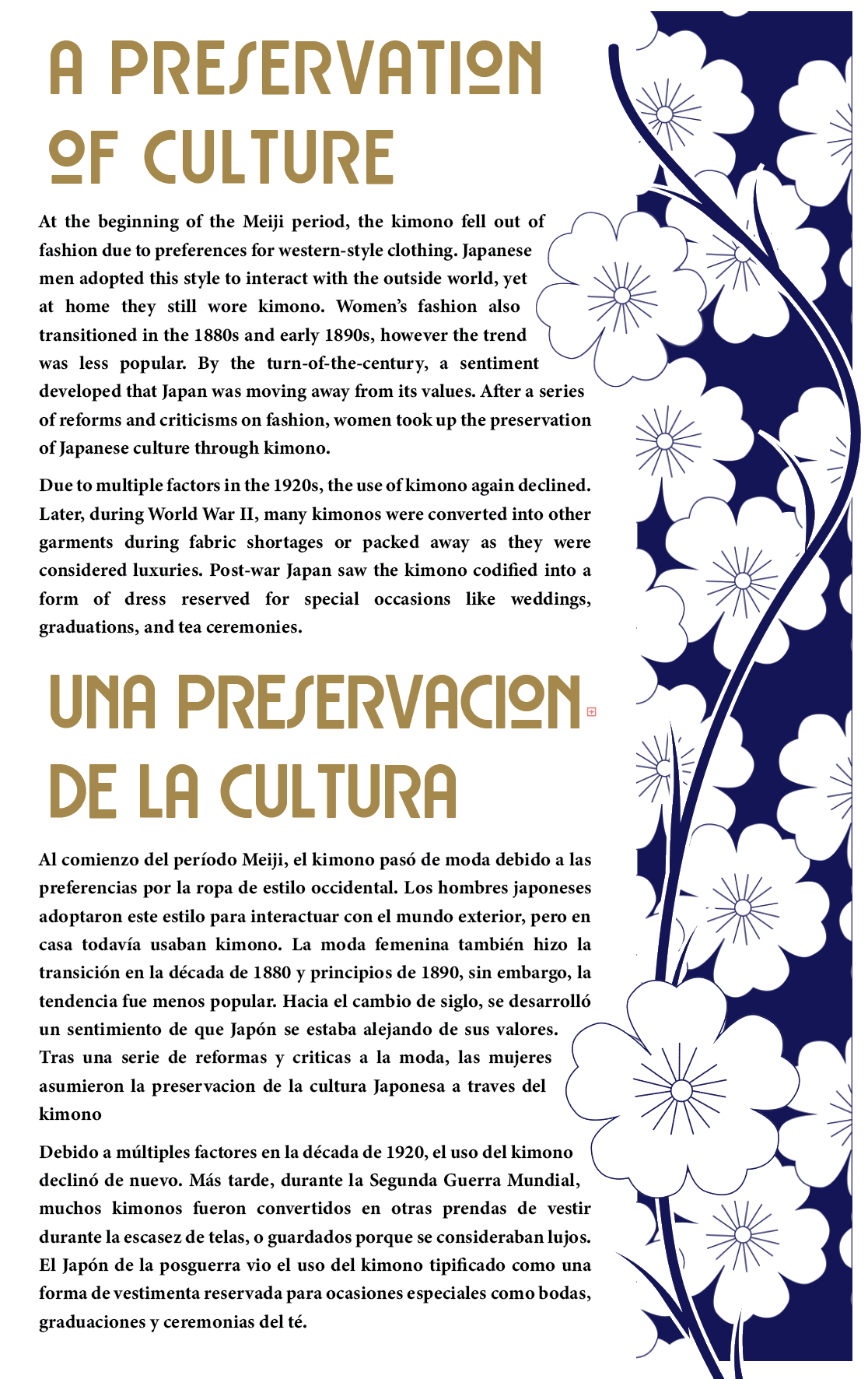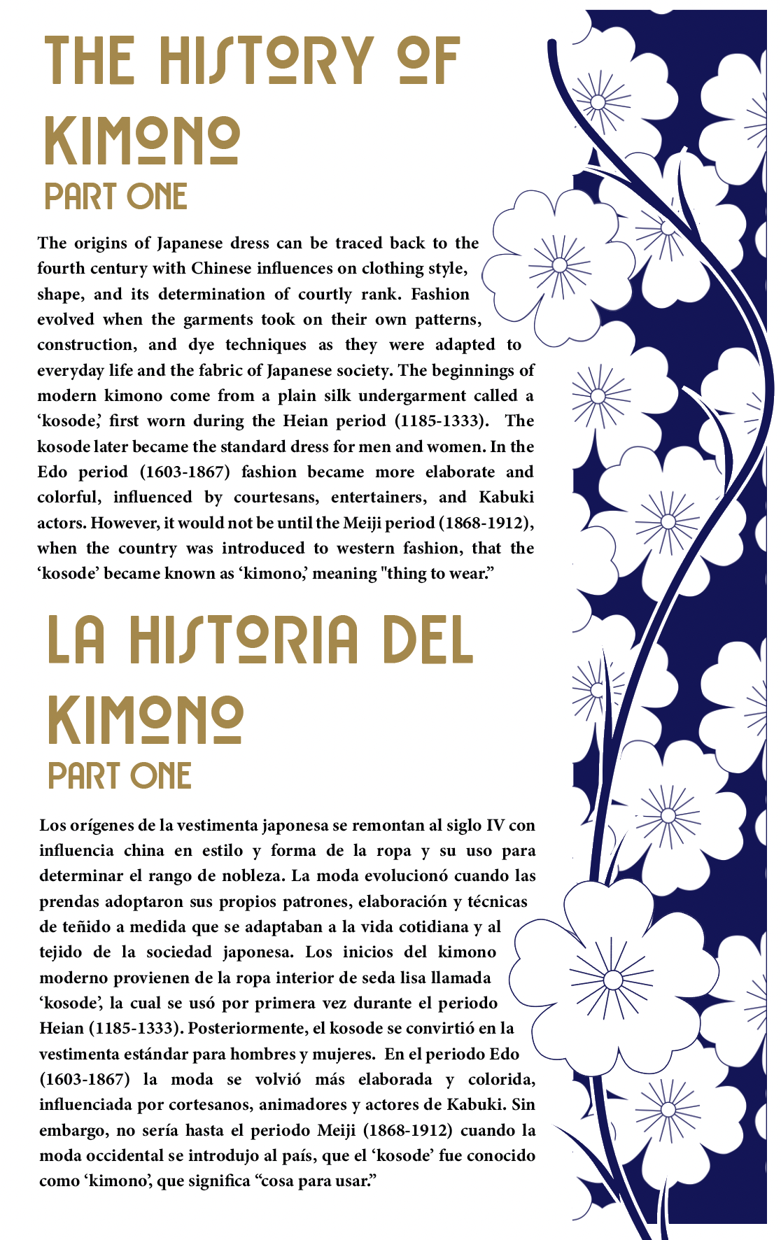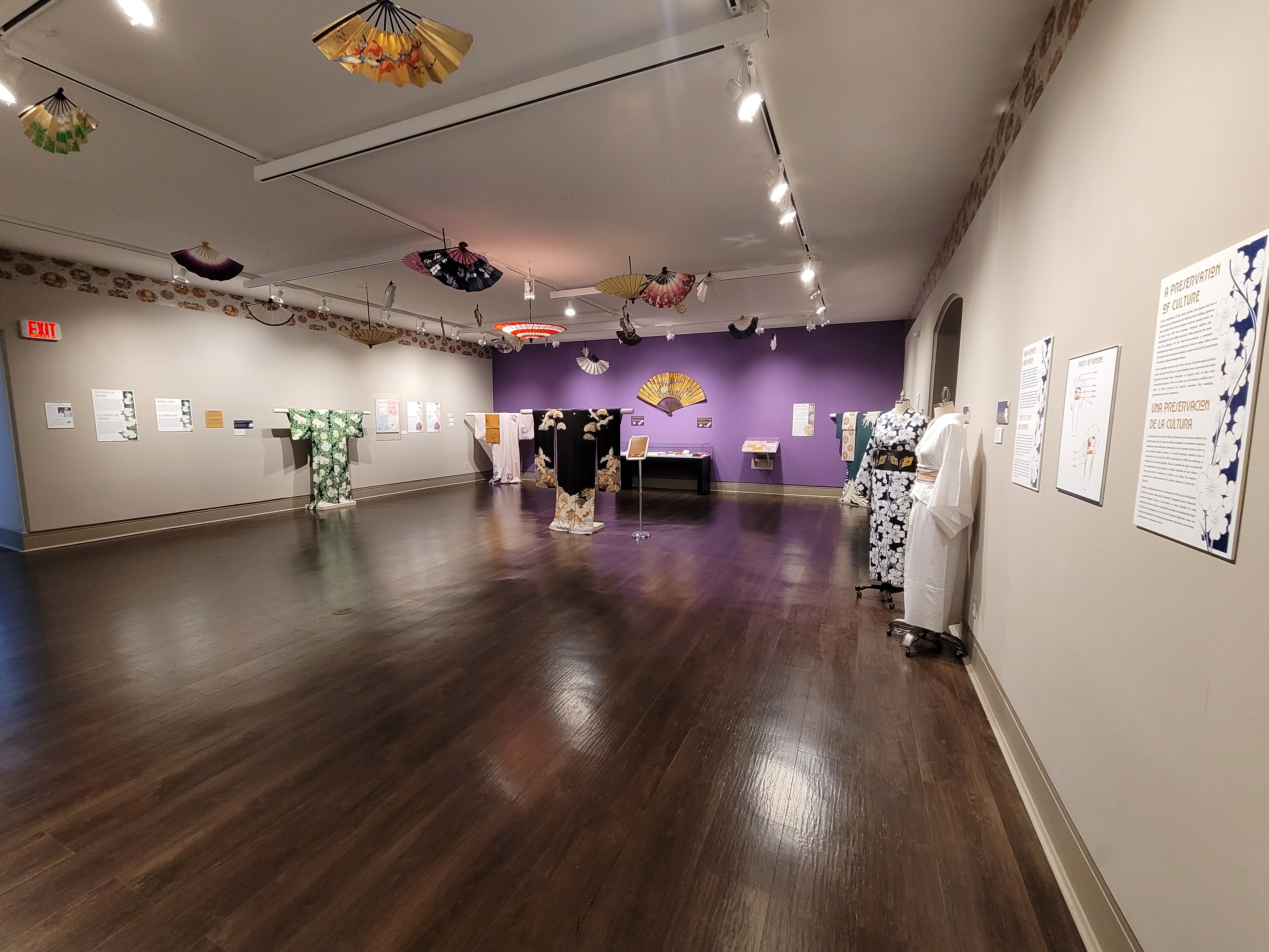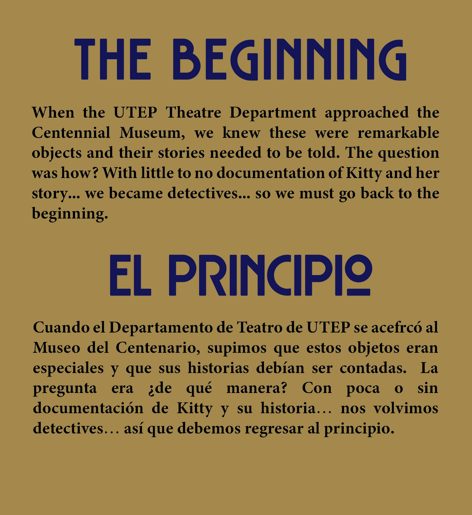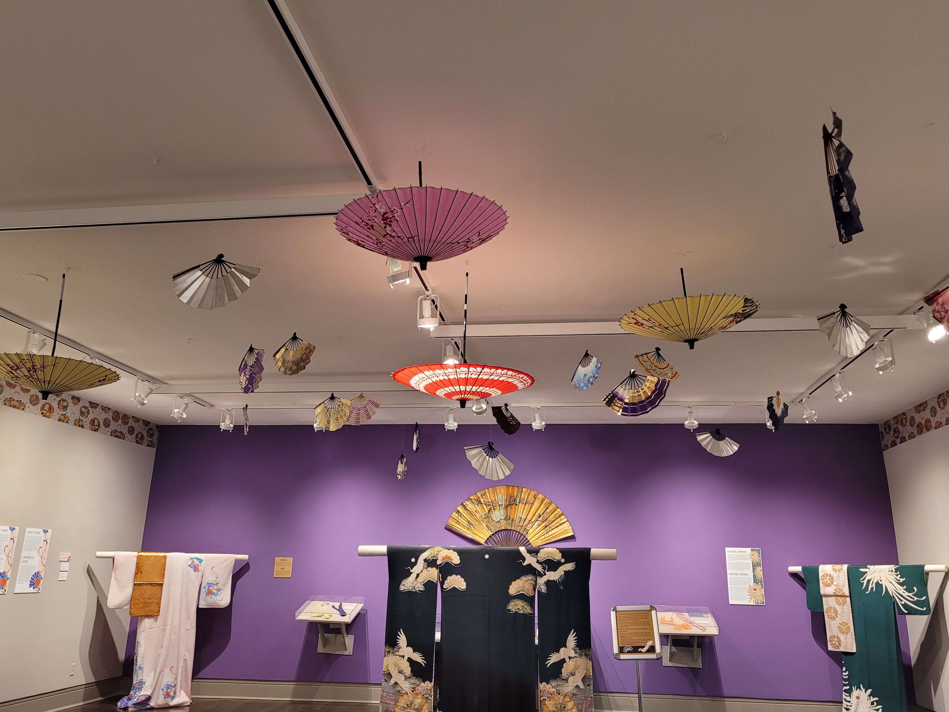 In 2016, the UTEP Theater Department received a large donation of kimonos, accessories, and performance videos that belonged to Katsuko "Kitty" Huntley. Mrs. Huntley, who grew up in Japan, married an American G.I., immigrated to the United States in 1952, and eventually settled in El Paso. While we know little about Mrs. Huntley and how she acquired these objects, this unexpected inheritance gives us a glimpse into a previously unknown life. In her videos, Kitty appears in kimono with her dance group. Their dance performances tell stories from a home across the world. We can speculate that her collection of kimonos and the dances that she performed provided a connection to Japan, her life prior to immigrating to the United States, and the Japanese- American community here in El Paso. It was this story that inspired us to title the exhibit Ties to Home: The Kimonos of Kitty Huntley.