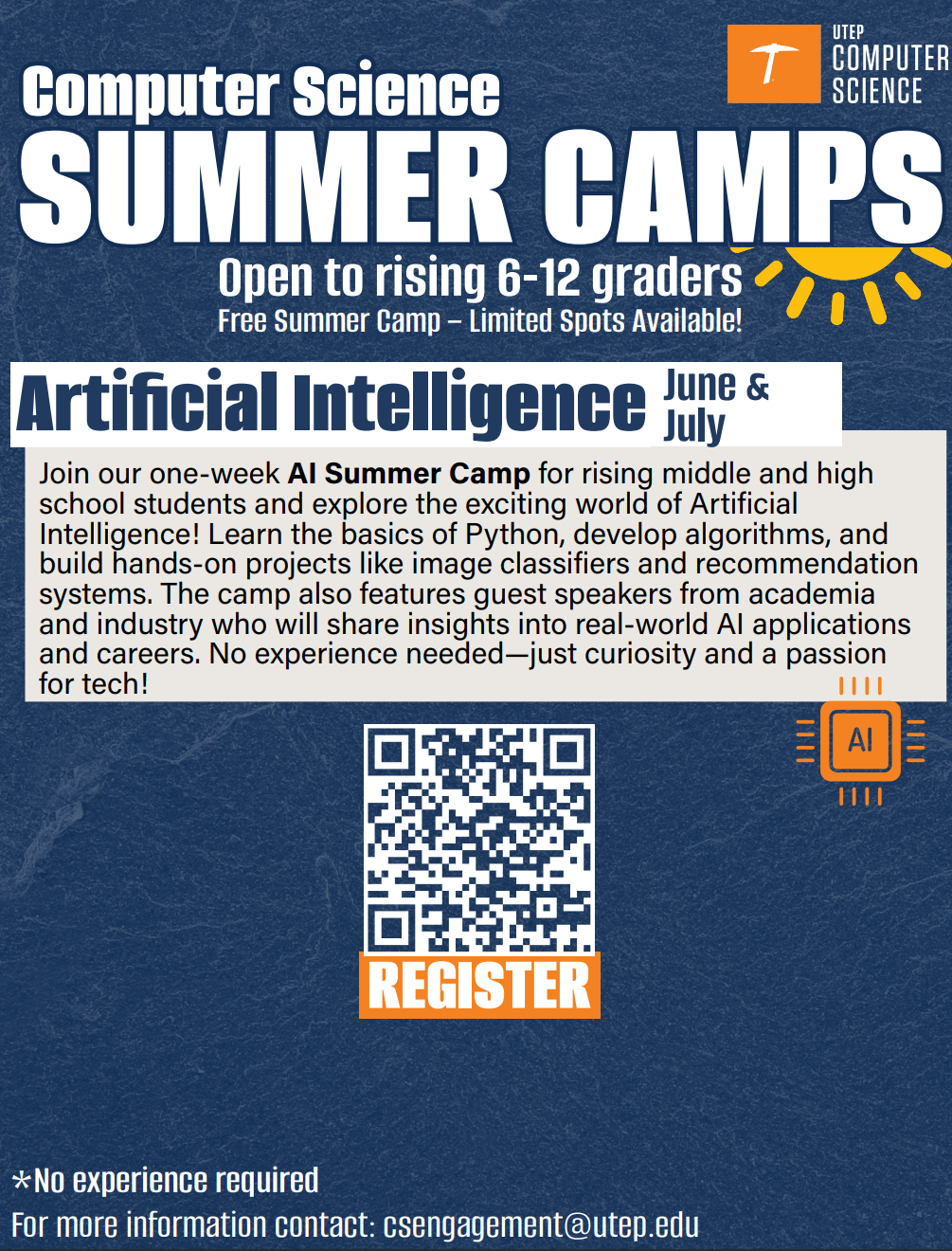Students will engage in hands-on activities, learn from UTEP CS mentors, and explore exciting topics in computing and technology.