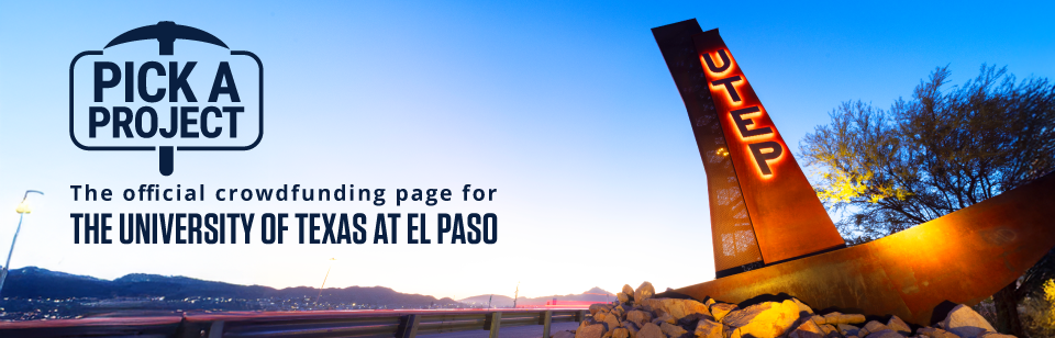 Pick A Project is the official crowdfunding platform for The University of Texas at El Paso, featuring opportunities to support a range of UTEP's unique and diverse research projects, student initiatives, and campus activities.Your contribution, in any amount will make an impact at UTEP.