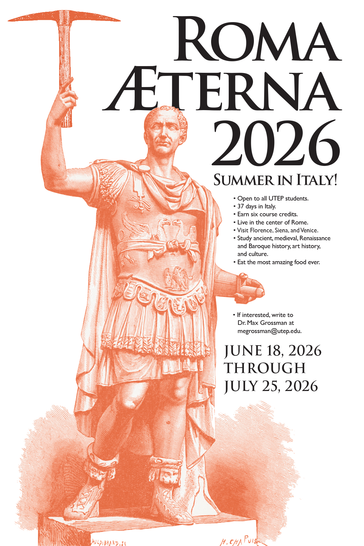 We are pleased to announce the launch of ROMA AETERNA 2026, our summer study abroad program in one of Europe’s most beautiful and historic cities. Participants in the program will arrive in Rome on June 18, 2026 and return July 25.