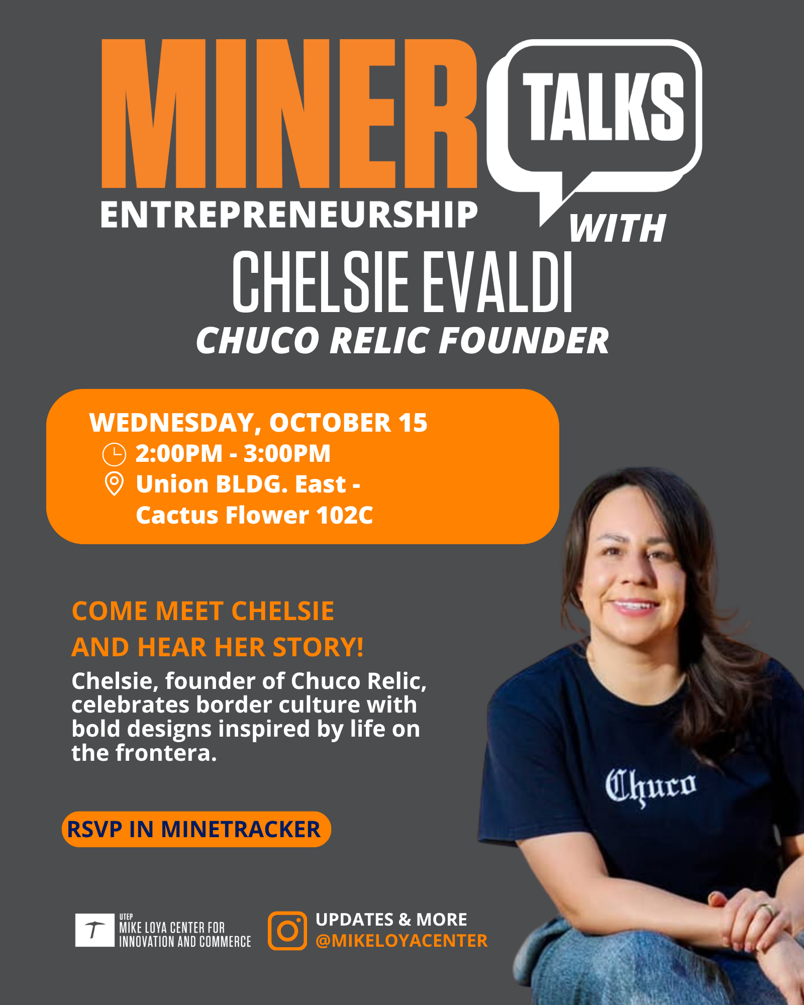 Our next guest is Chelsie Evaldi, founder of Chuco Relic, a bold and colorful love letter to border culture. Growing up crossing the bridge between Mexico and the U.S., Chelsie was inspired to create a space that celebrates the orgullo, flavor, and identity of life on the frontera. Through Chuco Relic, she has built a Latina-owned, community-powered brand that supports over 20 local artists and prints most of its vibrant tees, totes, stickers, and prints right here in El Paso.