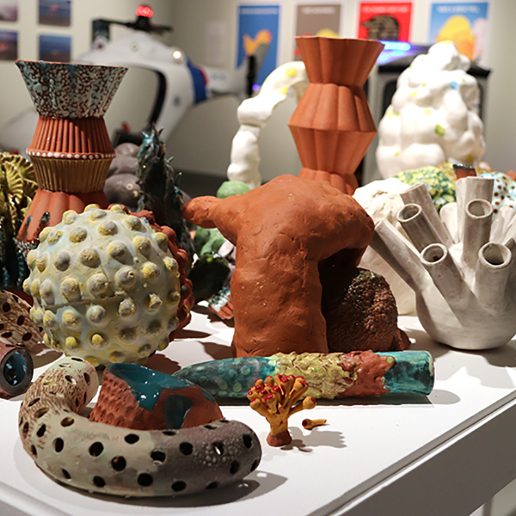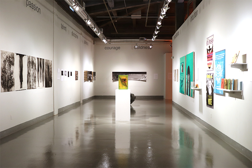 The Stanlee and Gerald Rubin Center for the Visual Arts was proud to showcase artwork by the distinguished faculty of the UTEP Department of Art in the 2018 UTEP Department of Art Biennial Faculty Exhibition. The exhibition, which only takes place every two years, features 25 members of the Department of Art and a wide range of artistic media including ceramics, metals, sculpture, painting, printmaking, drawing, graphic design and more. The organization of year’s exhibition included participation by students in the Department of Art. Graphic design students, under the supervision of Senior Lecturer of Graphic Design, Clive Cochran, competed to design the identity, invitation and publicity for the exhibit; and the work on display were complemented by original texts written by students of art history under the guidance of Assistant Professor of Art History, Dr. Melissa Warak.
