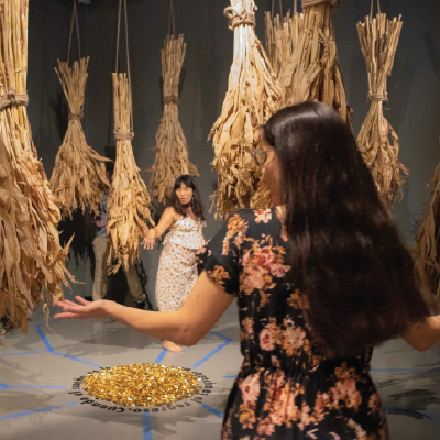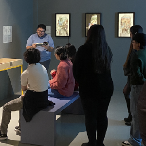 Local artist Aron Venegas, who was featured in the exhibition, discussed his artistic process and inspirations. He then led a hands-on printmaking workshop, where participants explored the techniques behind his captivating work. |