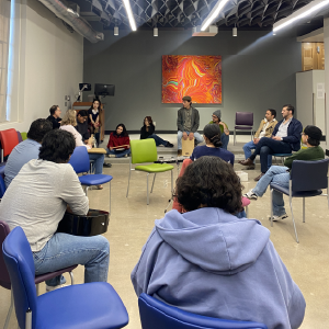 An improvisation-centered workshop focused on exploring how histories, cultural traditions, and personal experiences were kept and transmitted. Using sound as a point of departure, the workshop facilitated a safe space in community through the act of music-making, serving as a method of healing, investigation, knowledge exchange, creative work, and play. Recognizing the potential of listening as a space for the development of self-identity, group-identity, and mindful listening through collective experimentation and play, participants from all backgrounds, abilities, and identities, regardless of musical background. All instruments and voices were welcome. Students of any discipline were encouraged to attend as well.