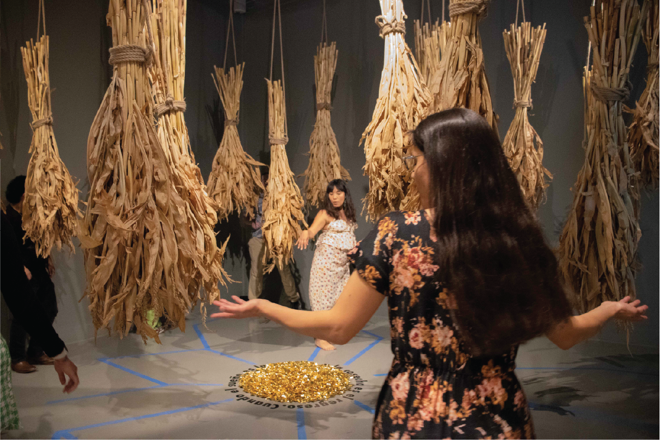 Attendees experienced a participatory performance by artist Lorena Molina in collaboration with dance faculty Sandra Paola López Ramírez and UTEP students. This performance, the culmination of a week-long residency with UTEP’s Performance Activism class, explored themes of homeland, migration, and return through the lens of cumbia dance. Danzas del Retorno was a participatory performance that explored the ideas of homeland, migration, and our dreams and hopes for a (many) returns. Using cumbia as a social dance with deep roots throughout Latinoamérica, participants embodied their inquiry while engaging with its history as a form of resistance and celebration of physical agency. |