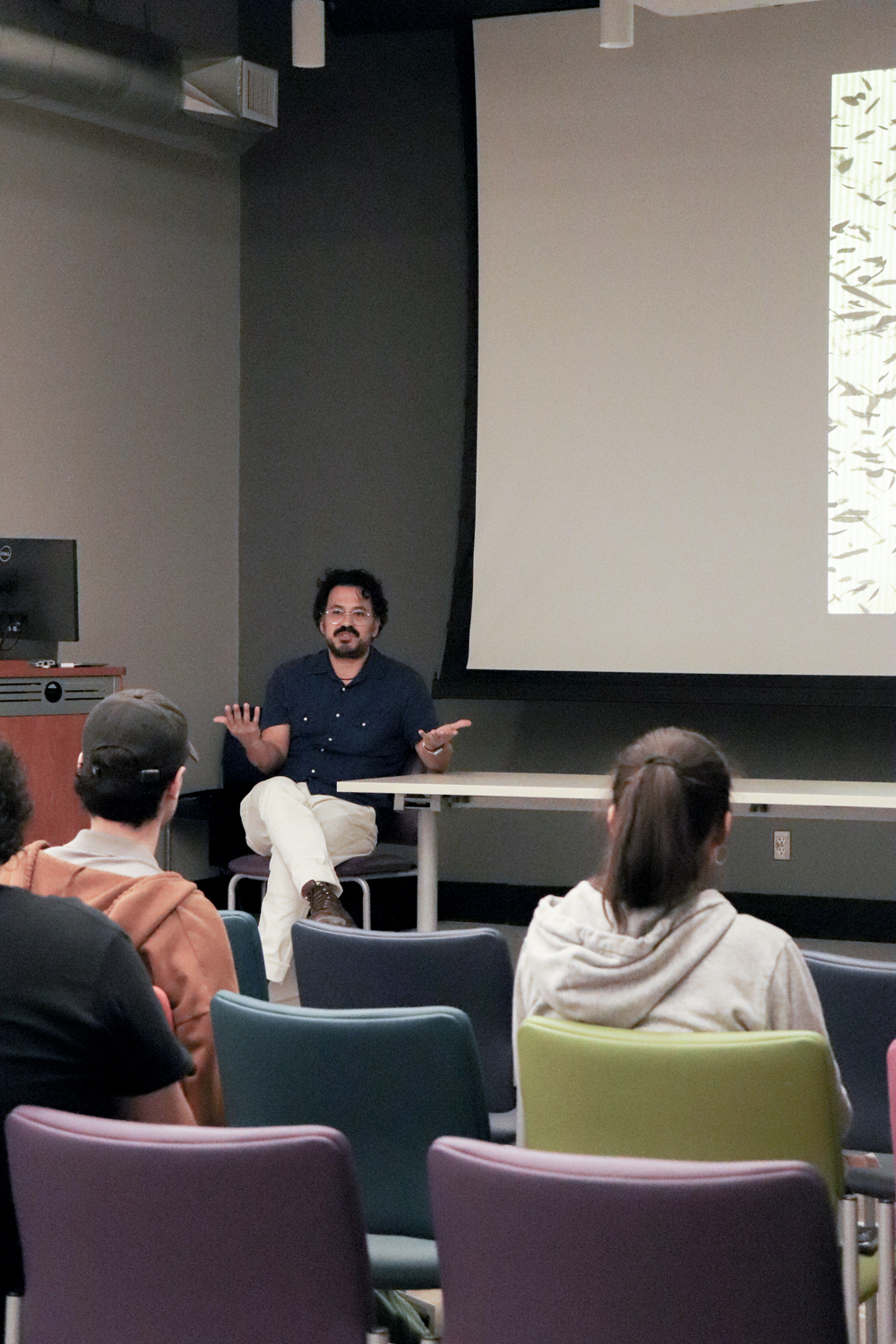 Students learned about Oscar’s career trajectory, experience with artists residencies including the Skowhegen School of Painting and Sculpture, and his work with contemporary frescos. |