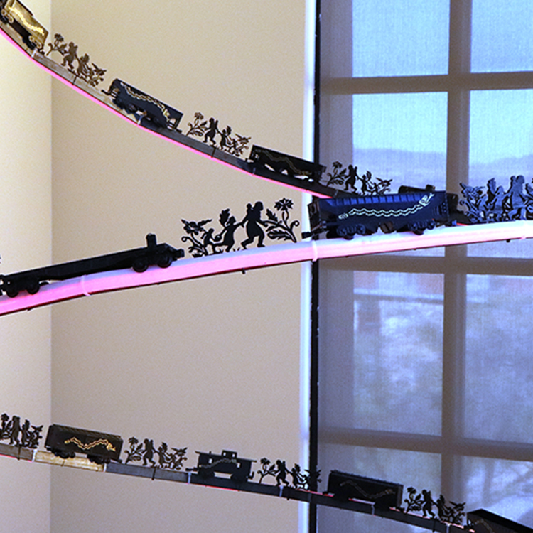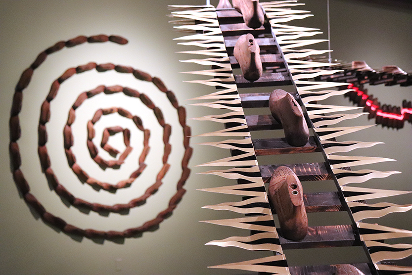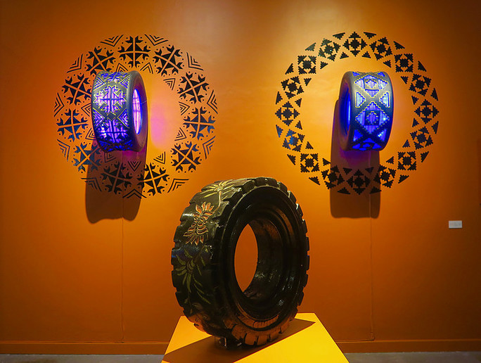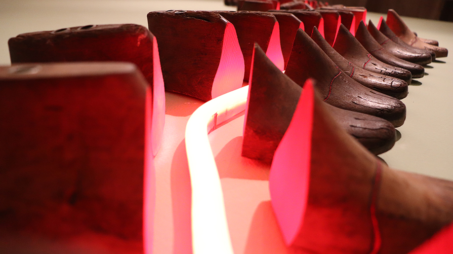 Tu Huella es El Camino (Your Footprint is the Path) is a solo exhibition of the work of Mexican Artist Betsabeé Romero(Mexico City, 1963) who addresses themes of migration and belonging through large-scale sculptures, prints and installations. For more than 15 years, Romero has explored topics of immigration, globalization and contemporary culture, reworking the meaning of everyday objects and imagery including automobiles, tattoos, urban signage, etc. to reach out to a broad audience.