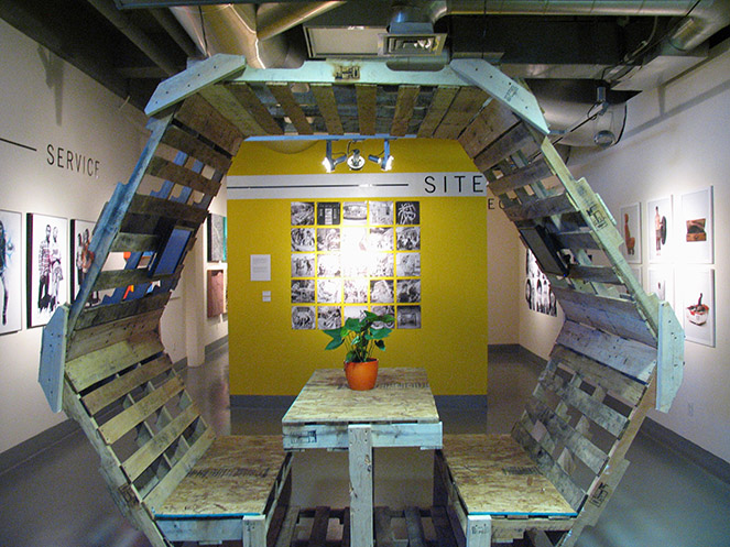 Community Through Action: Site, Service, Subject is the result of a yearlong investigation by current undergraduate Arelí Rocha under the mentorship of Kerry Doyle, director of the Stanlee and Gerald Rubin Center for the Visual Arts. Through the SURPASS and MERITUS programs of the Campus Office of Undergraduate Research Initiatives (COURI), Ms. Rocha was awarded with a two-part research opportunity that began in the summer of 2015 and extended through May 2016. As a SURPASS scholar, Ms. Rocha began to research the exposure of Studio Art students at the University of Texas at El Paso (UTEP) to current opportunities offered by the Museum and Cultural Affairs Department. The objective was to explore these opportunities, analyze the skills of the university, and propose a plan that aligned through professional development, the preparation of the students with the needs of the city. Through the MERITUS program, an expansion of this research took place during the academic year of 2015-2016, in which different transborder agents were chosen on the basis of their community-based art practices. The focus of this research was to provide a model to students and emerging artists by tracing the professional development of the aforementioned agents. The culminating exhibition serves then, not only as documentation of these practices, but also as a platform for critical thinking and dynamic engagement to the broader binational community.