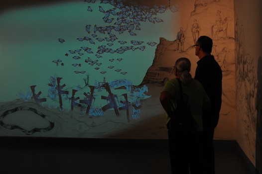 The Stanlee and Gerald Rubin Center for the Visual Arts presented Contra Flujo: Independence and Revolution, an exhibition that featured seven contemporary artists from Mexico City who use new media to launch a contemporary exploration of the centennial of the Mexican Revolution and the bicentennial of Mexico’s independence. Contra Flujo means “against the flow”. The artists in this exhibition created pieces that directly engaged and challenged the discourse of progress that was being commemorated in the wave of celebrations that took place across Mexico during the year 2010. They confronted the viewer with nuanced explorations of contemporary life in Mexico, including pieces that investigated historical dialogue of revolutionary ideals, the role of the media in creating the Mexican imaginary, and the problematic of the U.S. Mexican border. The artists used a wide range of technology, including sound, video, kinetic sculpture and web-based pieces to create site-specific installations, including several cross-border art pieces commissioned specifically for this exhibition.