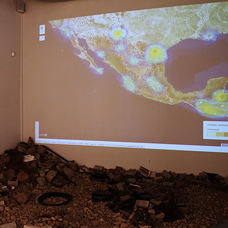 Feral Federation reveals emerging geographies of a growing constellation of contested urban enclaves governed by non-state actors, operating beyond the control of nation-states. Military doctrine is shifting to target such cities as prime loci of impending geostrategic conflicts, recognizing the new forms of soft power that autonomous agents exploit in urban constellations outside the rule of law. The database highlights and questions the pervasiveness of this increasingly common ‘securocratic’, managerial distinction, which casts a shared sense of immediate threat in a growing list of otherwise diverse and geographically distant cities. The exhibition offers a collection of urban landscapes, and the attendant technologies of occupation, protest, and agonistic conflict within the feral designees, as a counterpoint to the flattening gaze of the security state.
