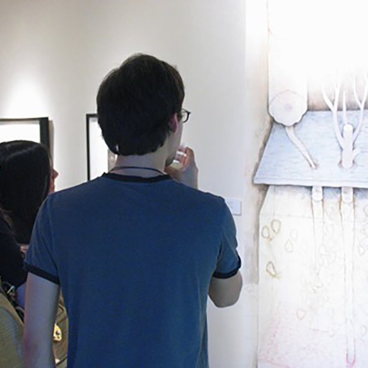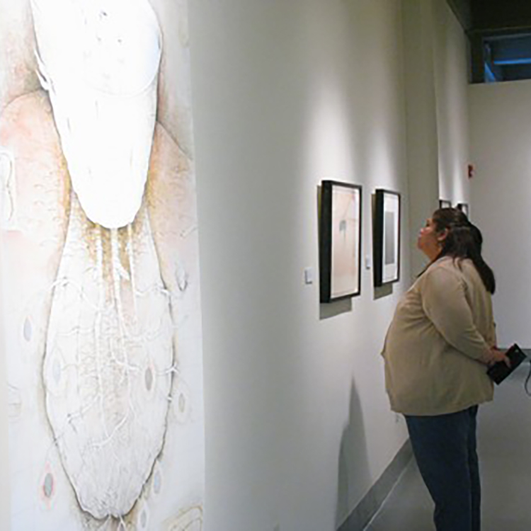 Themes and questions emerge from these prints and mixed media drawings by exploring the relationship between scientific and creative research. His artwork also plays the role of critiquing these concerns in biomedical technologies, especially when these advancements in science begin to blur the ethical boundaries.