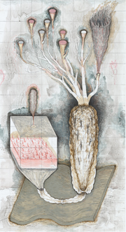 Body Plan #4, Mixed media on vellum, 72" x 36", 2010.
