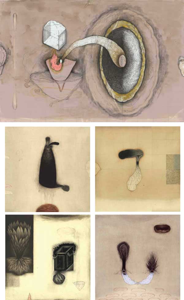 In this exhibition Sean Caulfield presented mixed-media drawings inspired by technical scientific language. For the past several years, the artist has been in conversation with bio-ethicists and stem-cell researchers and developed imagery based on those conversations.
