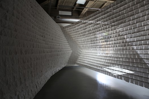 In the exhibitLight Lines, Jay Atherton and Cy Keener directed sunlight into the Rubin Gallery and onto vertical surfaces constructed from plaster impregnated fabric that stiffened when moistened. The artists installed nine mirrors in the landscape around the Stanlee and Gerald Rubin Center for the Visual Arts (Rubin Center) and each reflected the sun's rays into the gallery at a specific time of the day (the location of each and the time that its reflected light could be experienced was indicated on the map on the entrance wall on the ground floor of the Rubin Center). When UTEP's Seamon Hall was renovated to be the Rubin Center in 2004, all of its windows were covered with sheetrock in order to create wall space for the exhibition of art. ForLight Lines, three windows were revealed, one each on the north, west and east sides of the building, so that light could enter from three directions.