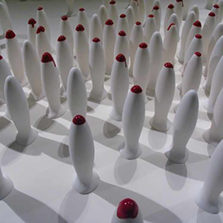 Multiplicity presented recent work by eight U.S.-based artists who create large-scale works by combining small-scale repeated clay forms. The primary intention of the exhibition was to present and discuss this trend in the field and to lend it theoretical credence by showcasing some of the best artists working in this vein today.