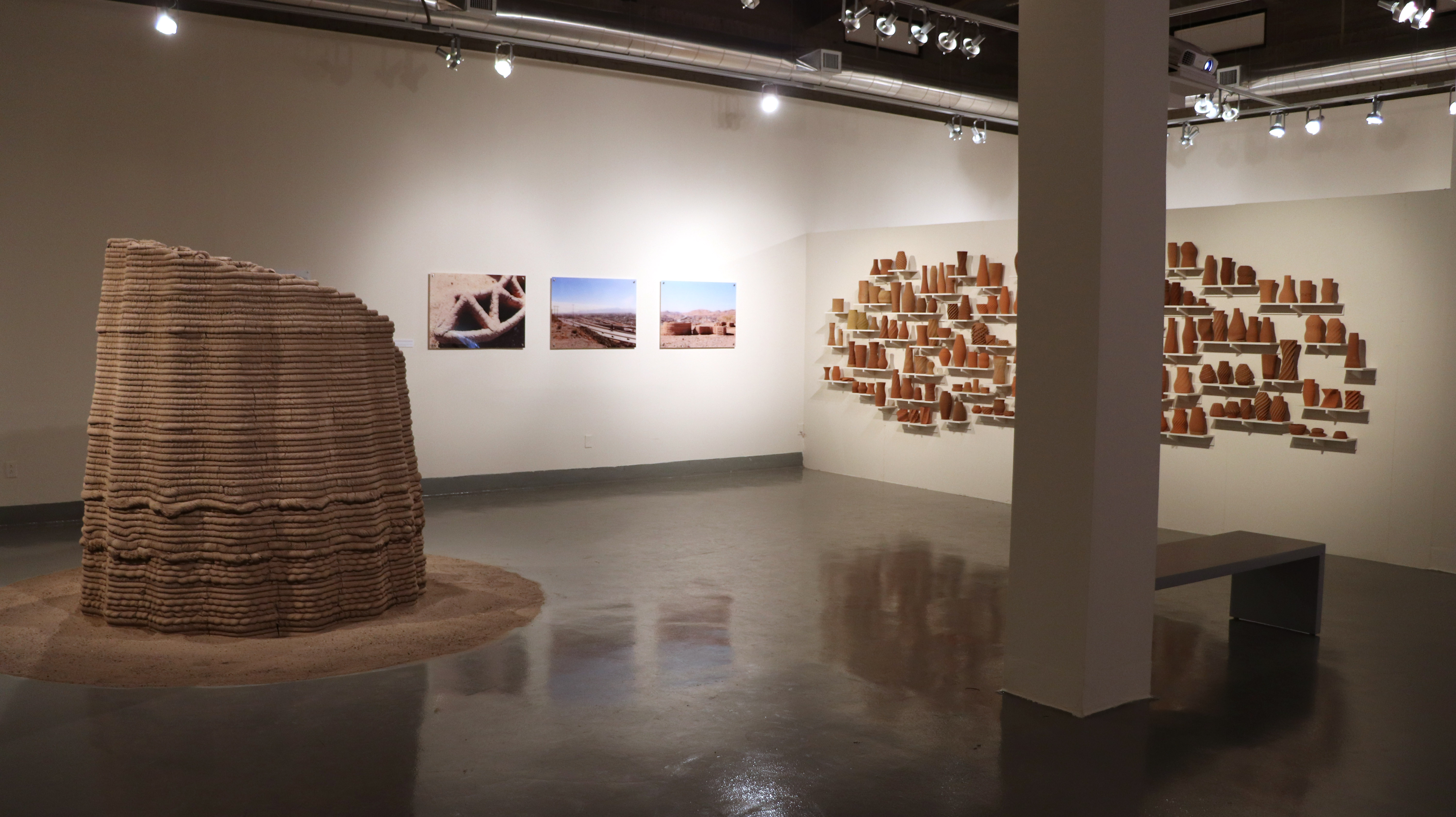 The Rubin Center’s contribution to New Cities Future Ruins is the collaborative exhibition Sections, featuring three projects that reflect on the border environment - earth (Ronald Rael and Virginia San Fratello), air (AGENCY Architecture) and water (Ivan Puig). The projects have been developed through multiple site-visits to the border where the artists worked with diverse academic and community collaborators including the Chamizal neighborhood association, Bowie High school gardens, UTEP’s Center for Environmental Research Management, the Yselta del Sur Pueblo Tigua Indian Cultural Center and UTEP Department of Art Ceramics. The final projects in the gallery space will be complemented by a didactic installation under the artistic direction of Zeke Pena, who will tell the story of the projects development as well as highlight community projects that address the environment at the US Mexico Border.
