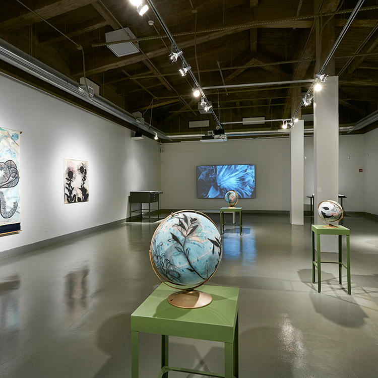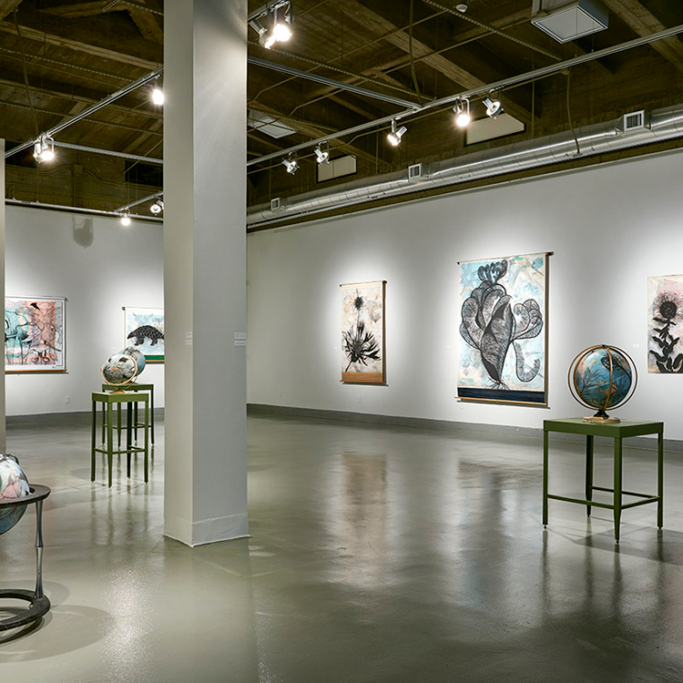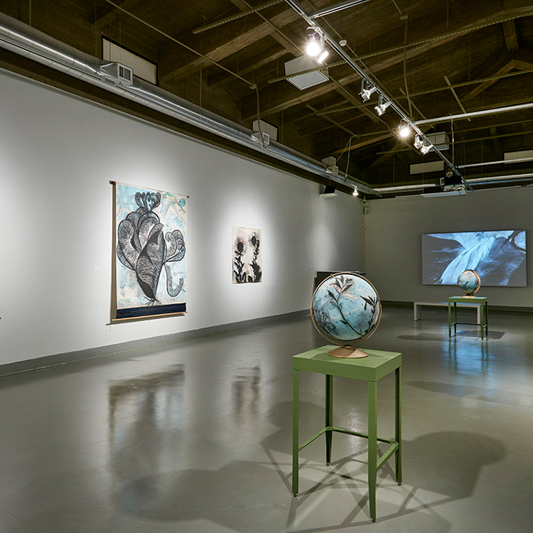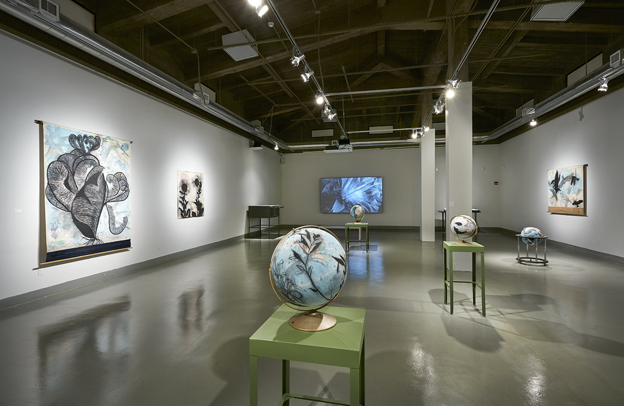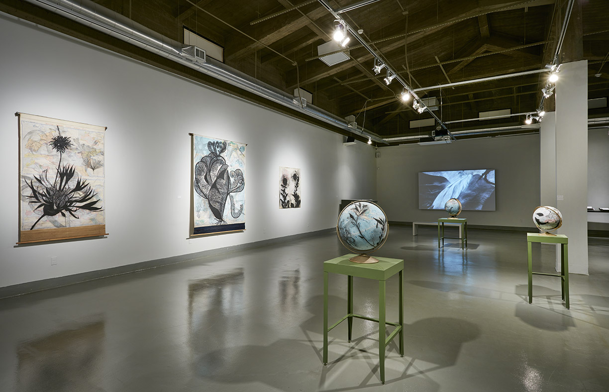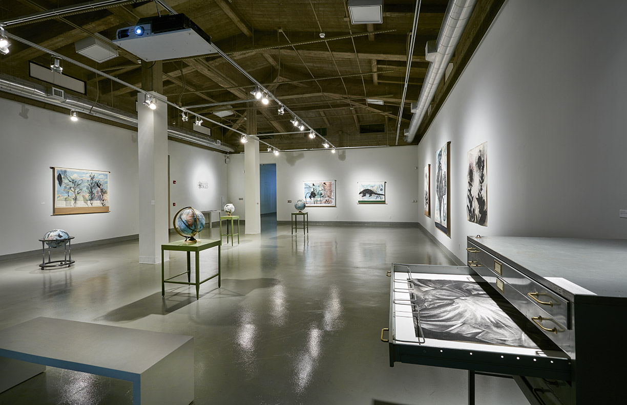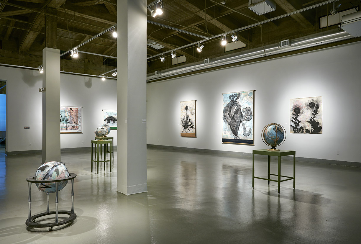 Suzi Davidoff has been intricately engaged in the West Texas landscape she calls home, creating drawings paintings and prints that reflect both soil and sky and often incorporating found materials including cochineal, clay, natural charcoal and lichen. Mapping has long been central to her understanding of nature. In this exhibition featuring new work, Davidoff presents a series of drawings on found maps and globes and with an accompanying hand-drawn animation, a new medium for this established artist.