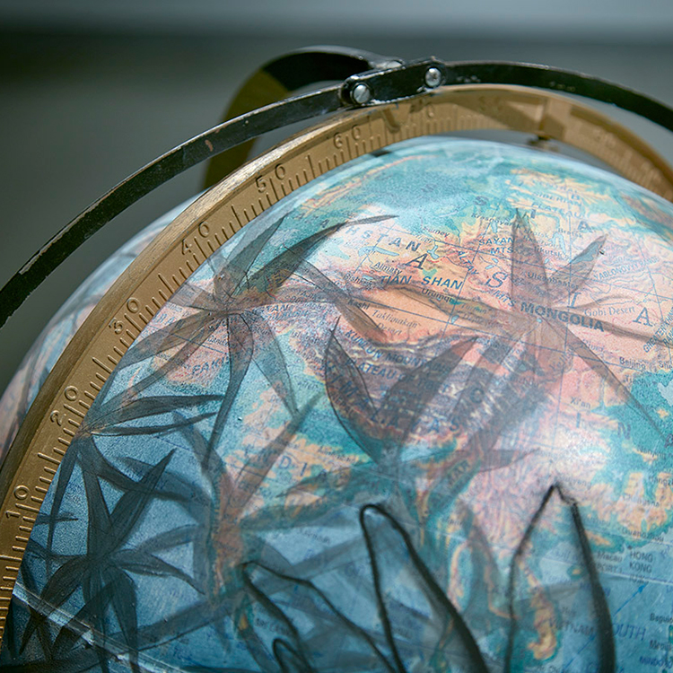 Maps are part of our human system for observing, defining and ordering the natural world. Most of the maps and globes in this project are out-of-date, with countries that no longer exist and boundaries that have moved, referring to a changing world, both environmentally and politically.