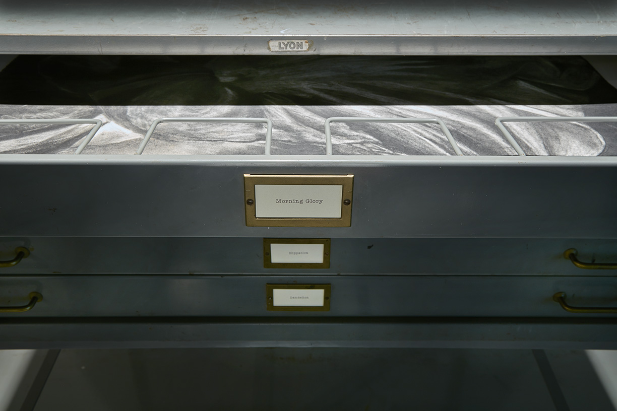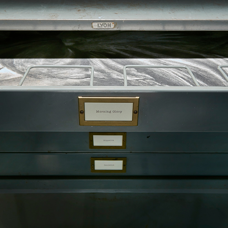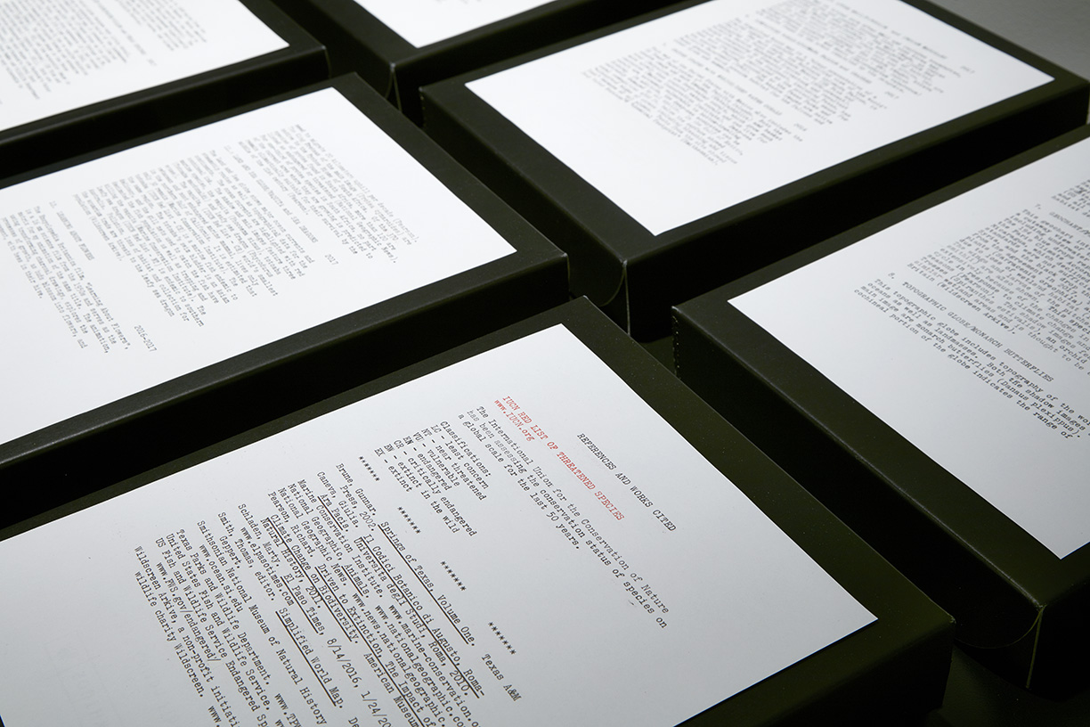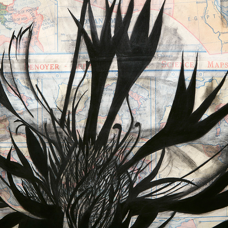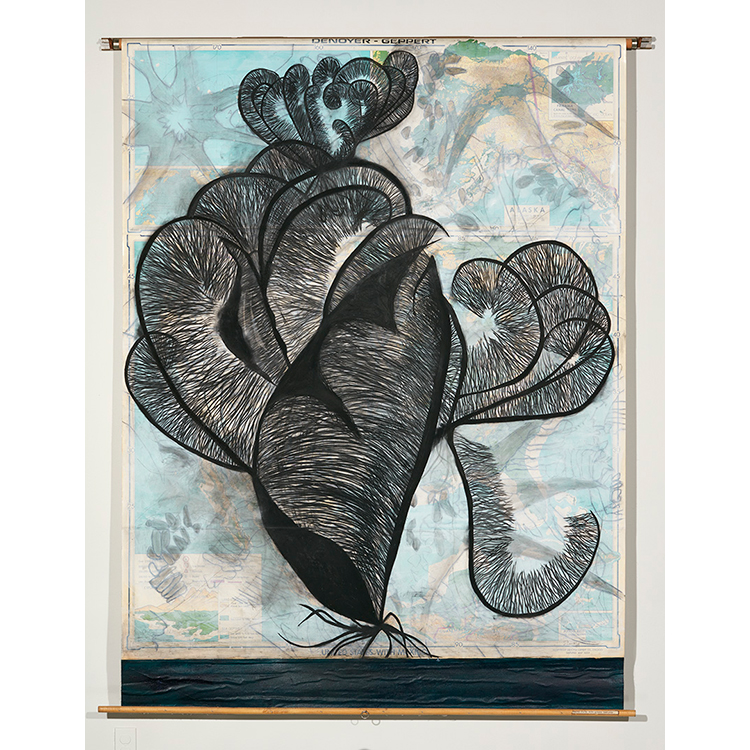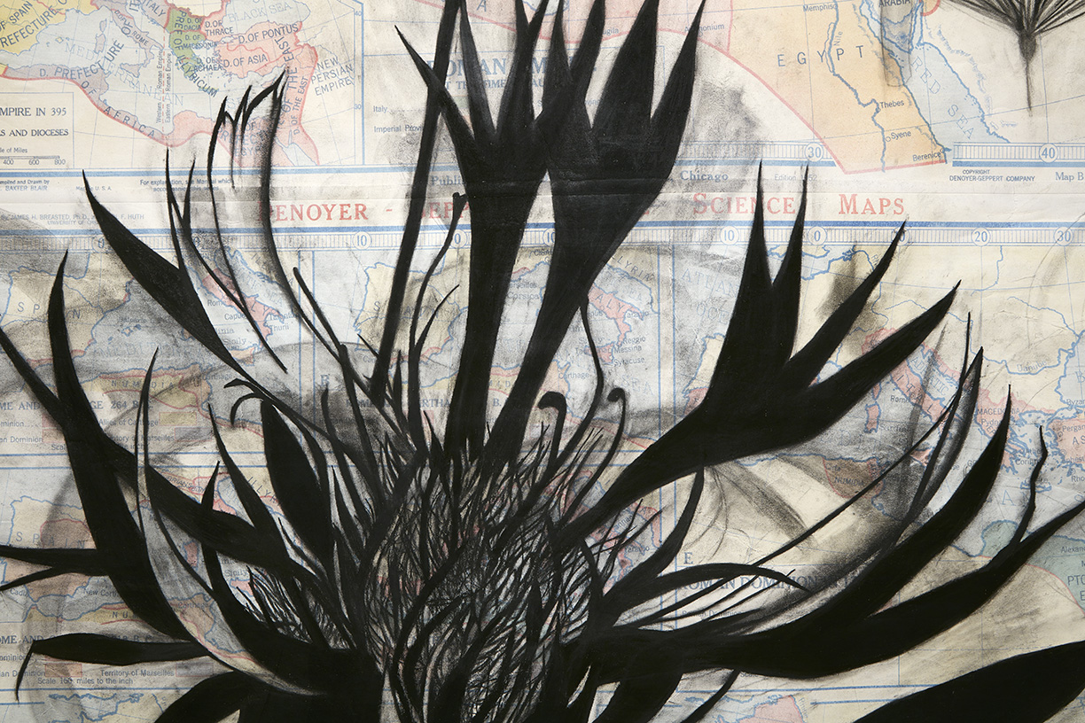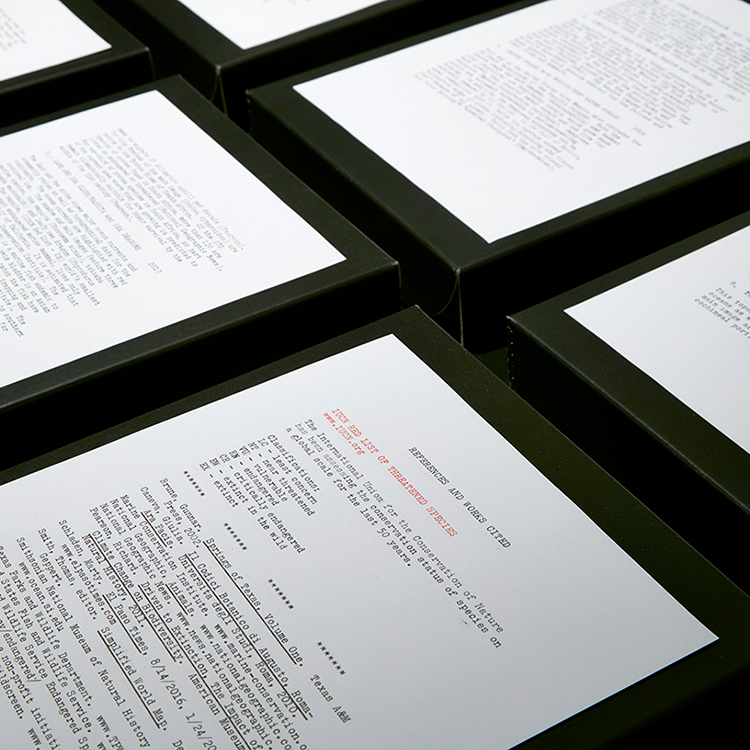 This group of works is a conversation about human-wrought changes in the ecosystem. It is an exploration of the contrast between the clarity and wonder of the natural world as the artist perceived it in elementary school science and geography classes and the present instability of specific natural forms, both seen and unseen, which may soon disappear. The project was inspired in part by the IUCN Red List of threatened species, an inventory of the conservation status of the world’s biological species.