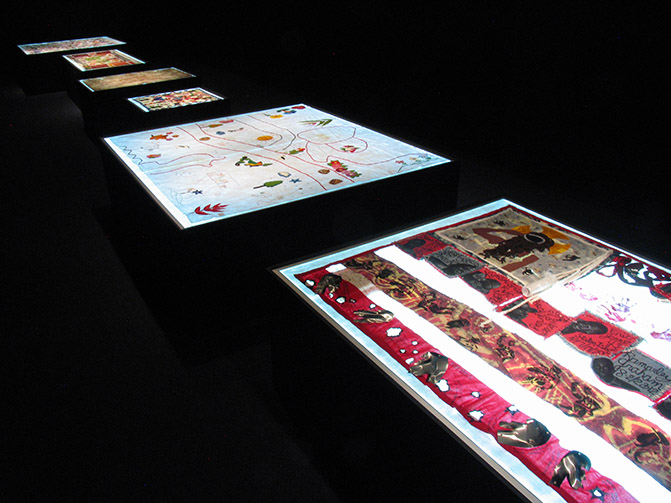 Teresa Margolles: We Have a Common Thread expands on the artist’s long exploration of violence through a series of new works involving the unprecedented participation of artist-embroiderers from Panama, Nicaragua, Guatemala, Brazil, Mexico, and the United States, all of whom share her concerns about violence, particularly against women. After explaining her vision for the project, Margolles provided each group with a fabric that had been marked through contact with the body of a woman, or in some cases a man, who had suffered a violent death. She invited the embroiderers to create patterns on the fabric as a way to trigger a conversation about the violence and social problems plaguing their respective communities. Some of these conversations were recorded and are included here in a series of videos providing context for the textiles. Teresa Margolles: We Have a Common Thread is organized by the Neuberger Museum of Art, Purchase College, SUNY, and has an important connection to the borderland, most particularly in relation to the violence experienced by Ciudad Juarez in recent decades, peaking in the period from 2009-2012. The exhibition will be complemented by an interdisciplinary speakers series exploring violence, trauma and social memory.